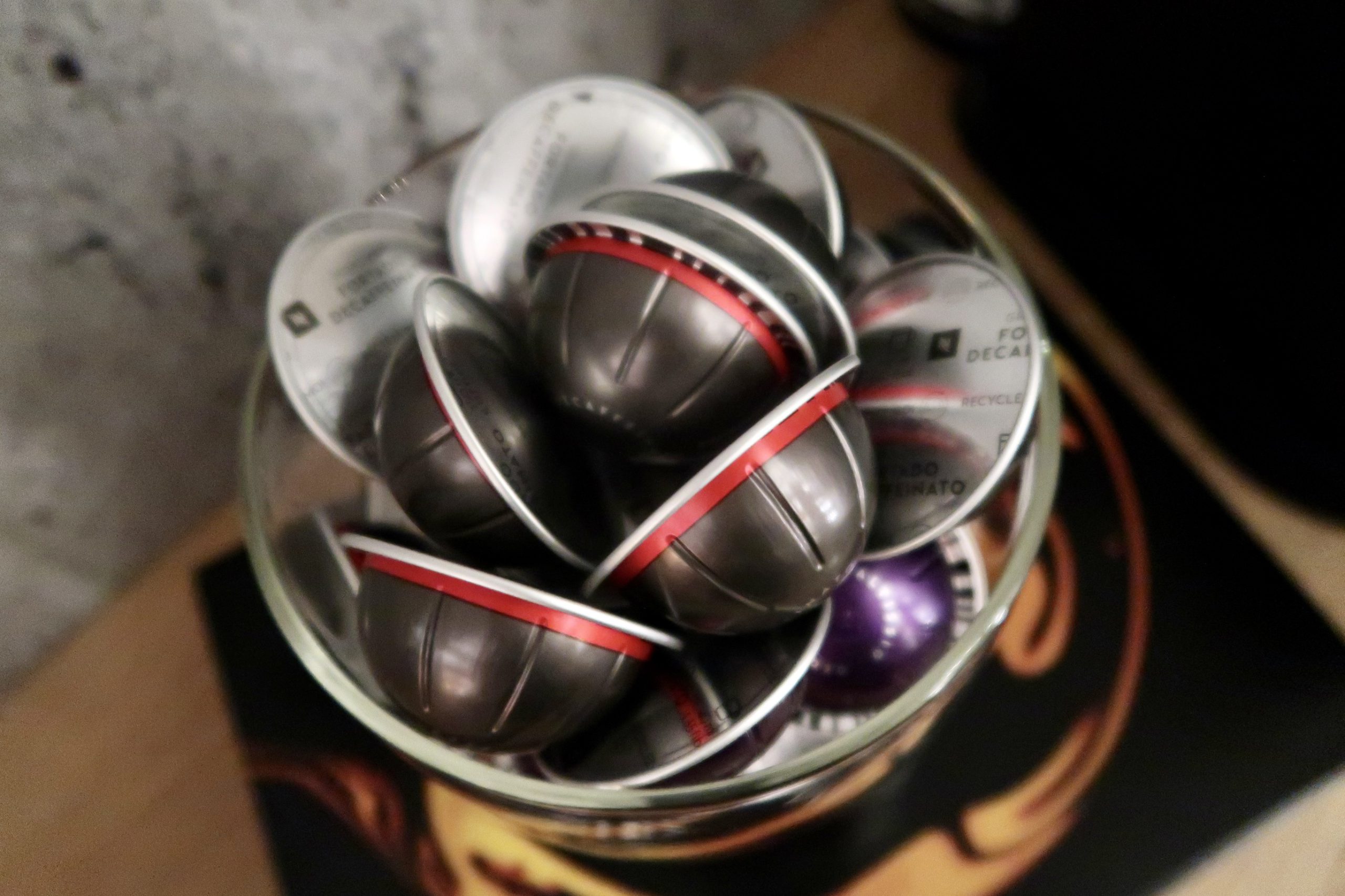 Jag älskar min nya kaffestation som vi har här hemma. Nu står även den andra Nespresson där, den ”vanliga”. Ja för den ville jag ju inte kasta. Dock så använder jag bara Nespresso Vertuo Next hela tiden, alltså den nya. Såååå gott kaffe och fler sorter koffeinfritt att välja på. Jag är sååå nöjd med den här maskinen. Finns HÄR om du är intresserad av en likadan, var 35% rabatt på den nu. Letade även efter den fina kapselbehållaren men den verkar vara slutsåld.