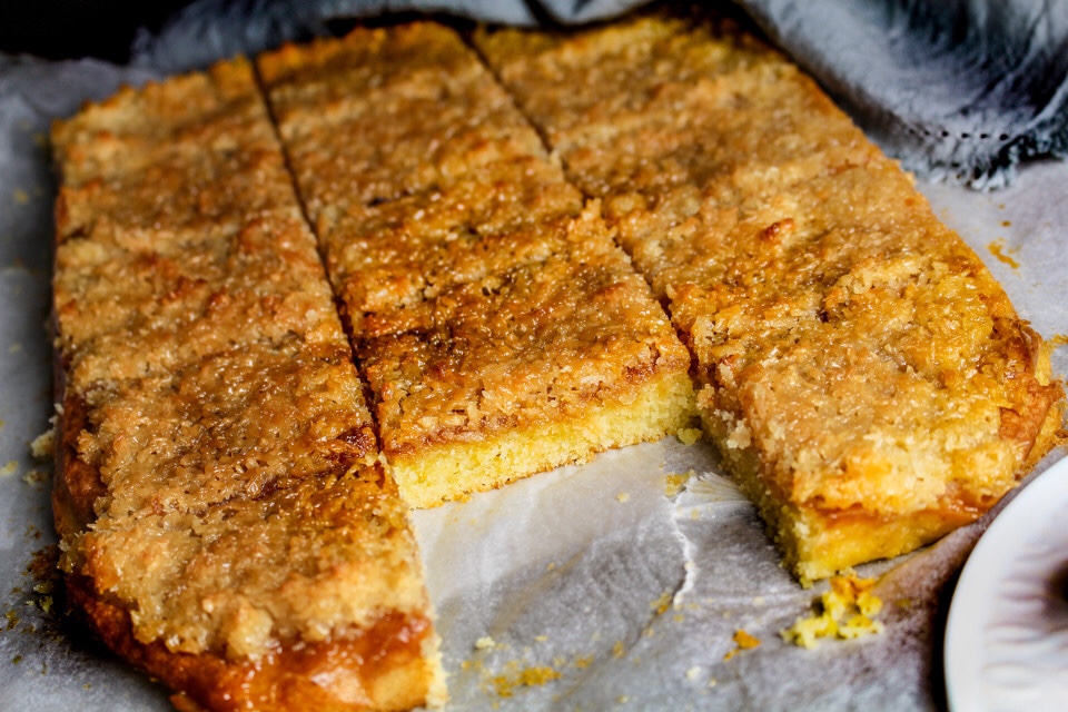6) Häll över glasyren på den avsvalnade kakan och strö över riven kokos. MUMS!