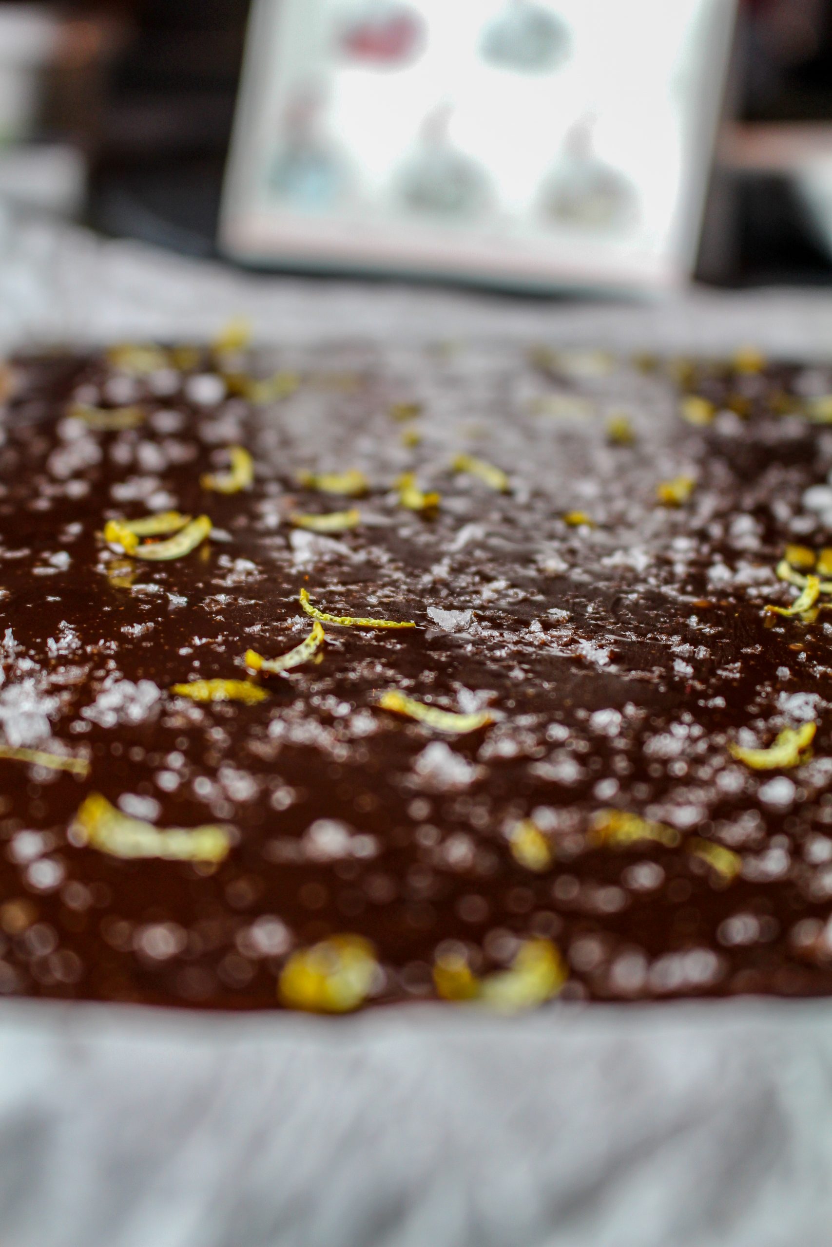 Här har jag hunnit med lite julgodistillverkning. Jag smög upp tidigt i morse och försökte att inte slamra alltför hårt med kastrullerna. Chokladkola med flinsalt och citronzest stod på schemat. Jag tror att det blev superbra, det ser så ut i alla fall. När jag skrivit klart till dig så ska jag slå in dem i smörpapper och sen ställa fram i en skål på köksön. Det är väl trevligt när det står framme lite julgodis såhär nära inpå jul?