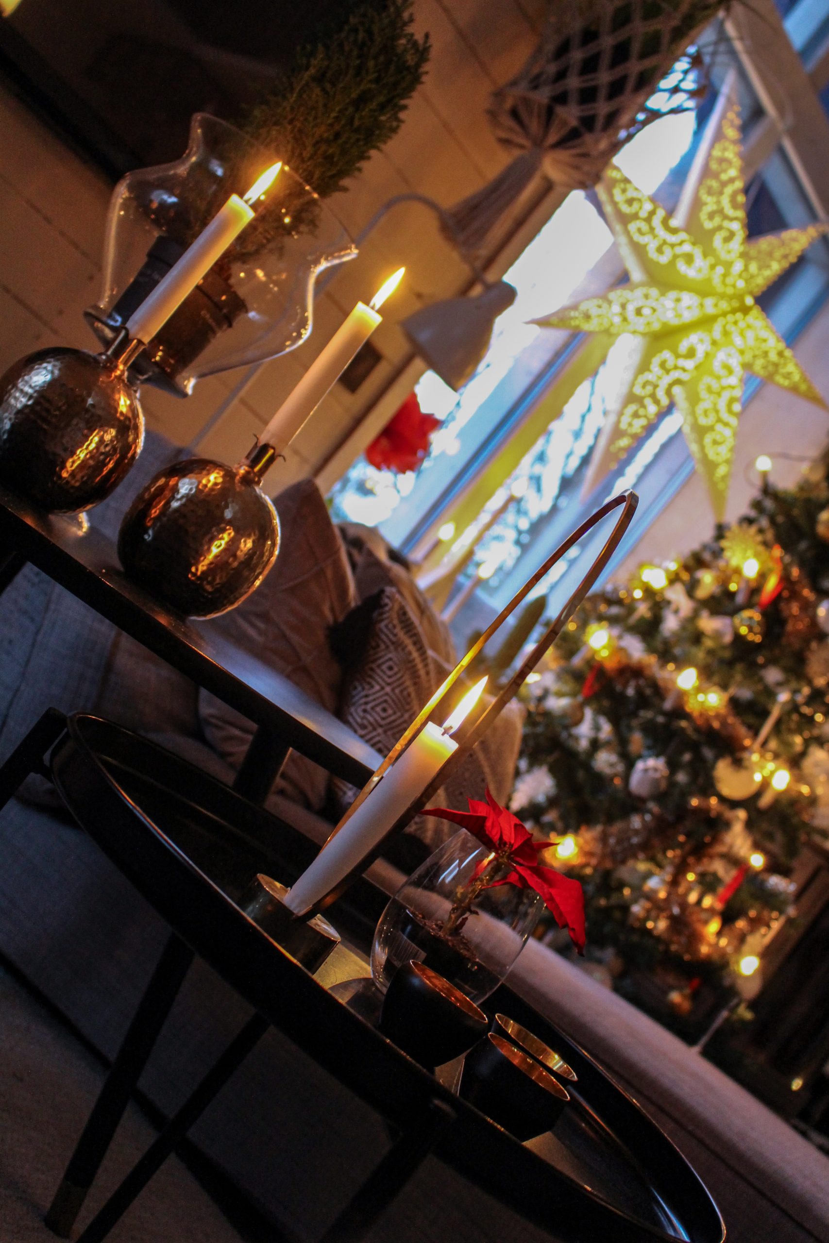 Trots detta otyg till väder som har tagit formen av ett grått täcke med flera lager så kämpar vi tappert med julkänsla. Det eldas ljus och tänds brasor om vartannat. Tomten har sin lykta med extra brinntid på värmeljusen. Jag vet inte hur många paket jag avverkat redan? Sjuk åtgång här hemma. Men vad mysigt det är med ljus. Det gör allt den här årstiden.