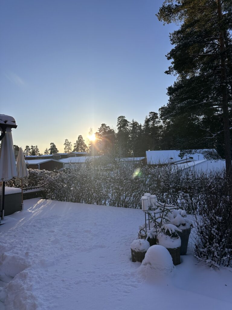 Gick en promenad med Tony runt huset. Behövde se solen, känna frisk luft och andas densamma. Solen låg sådär fint lågt som den gör på vintern och värmde ansiktet. Klädde på mig ordentligt och fick andas friska andetag ned i lungorna, så skön känsla.