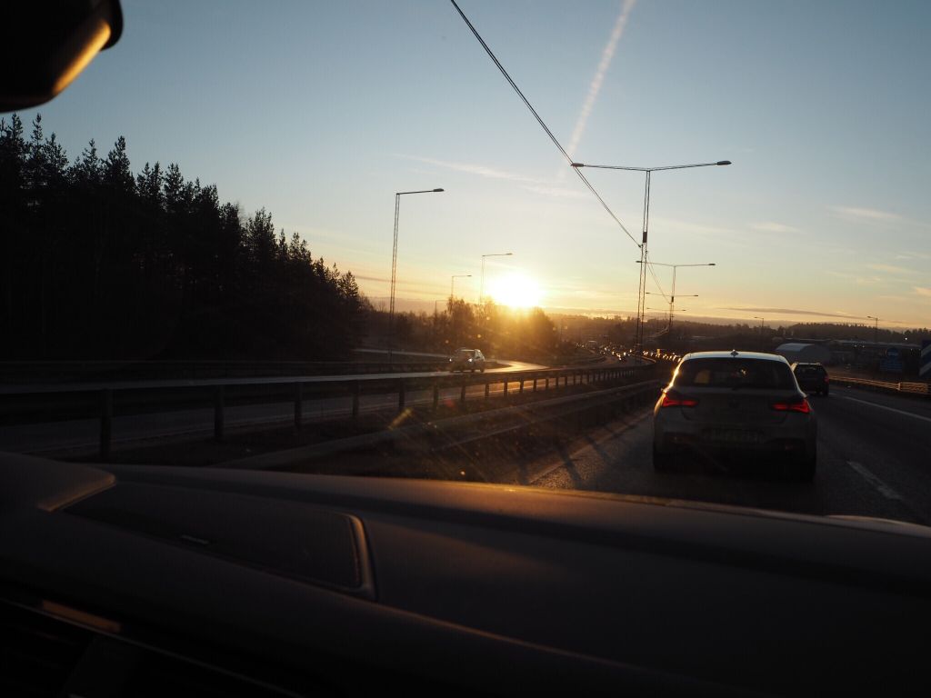 På väg i bilen i morse. Det började med en riktigt mörk och grå morgon som under resans gång artade sig och blev riktigt härlig. Vi lyssnade på gamla låtar i bilen i morse och sjöng riktigt högt. Jag ÄLSKAR sånt! Jag älskar och sjunga i bilen. I morse kom jag på hur mycket jag saknat Tonys sångröst också. Han är grymt duktig på att sjunga och har ju tidigare sjungit i band också. Blir varm i hjärtat av hans sångröst, den ger mig så fina minnen från när vi träffades.