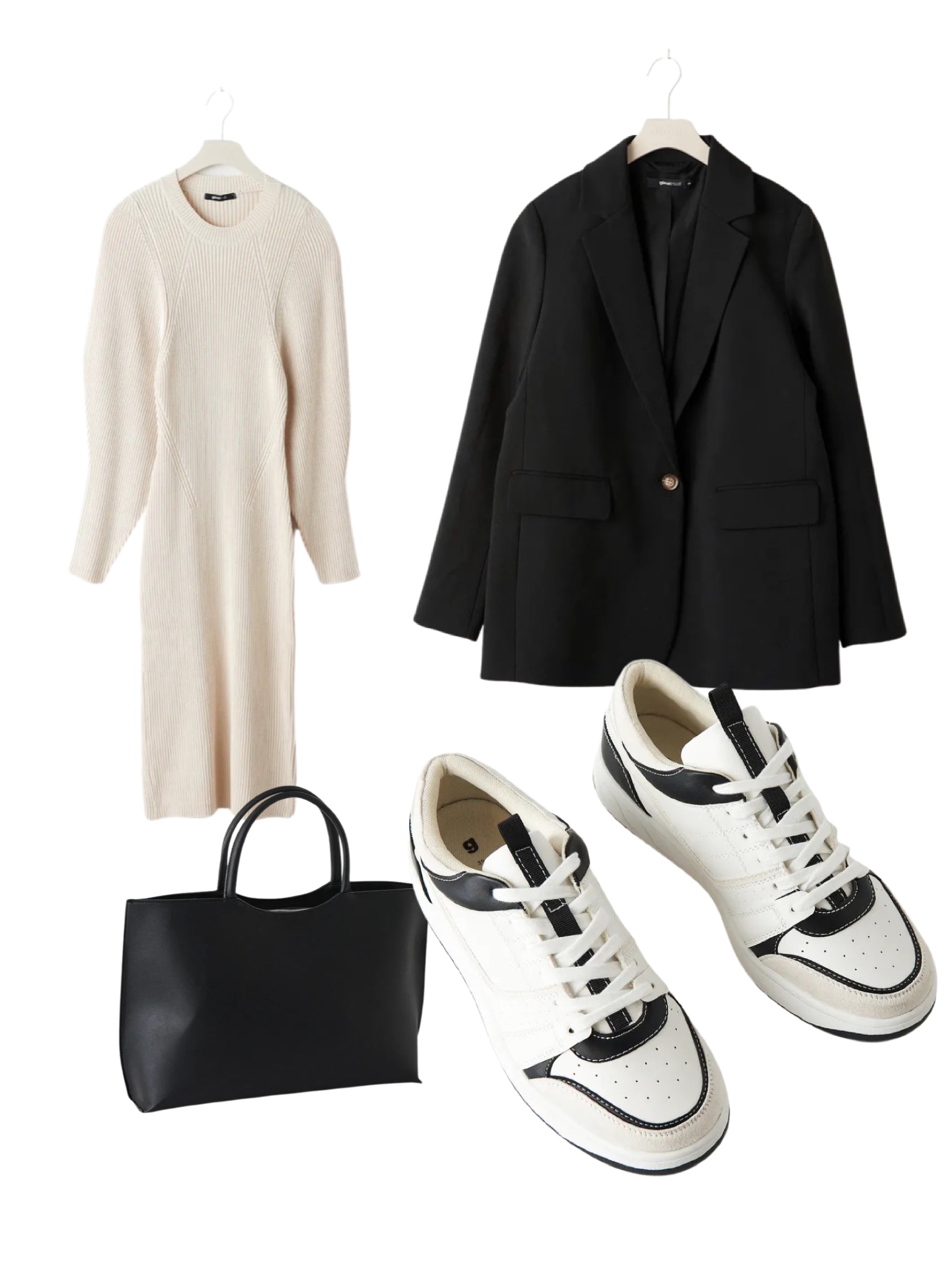 Stickad klänning // Sneakers // Väska // Kavaj