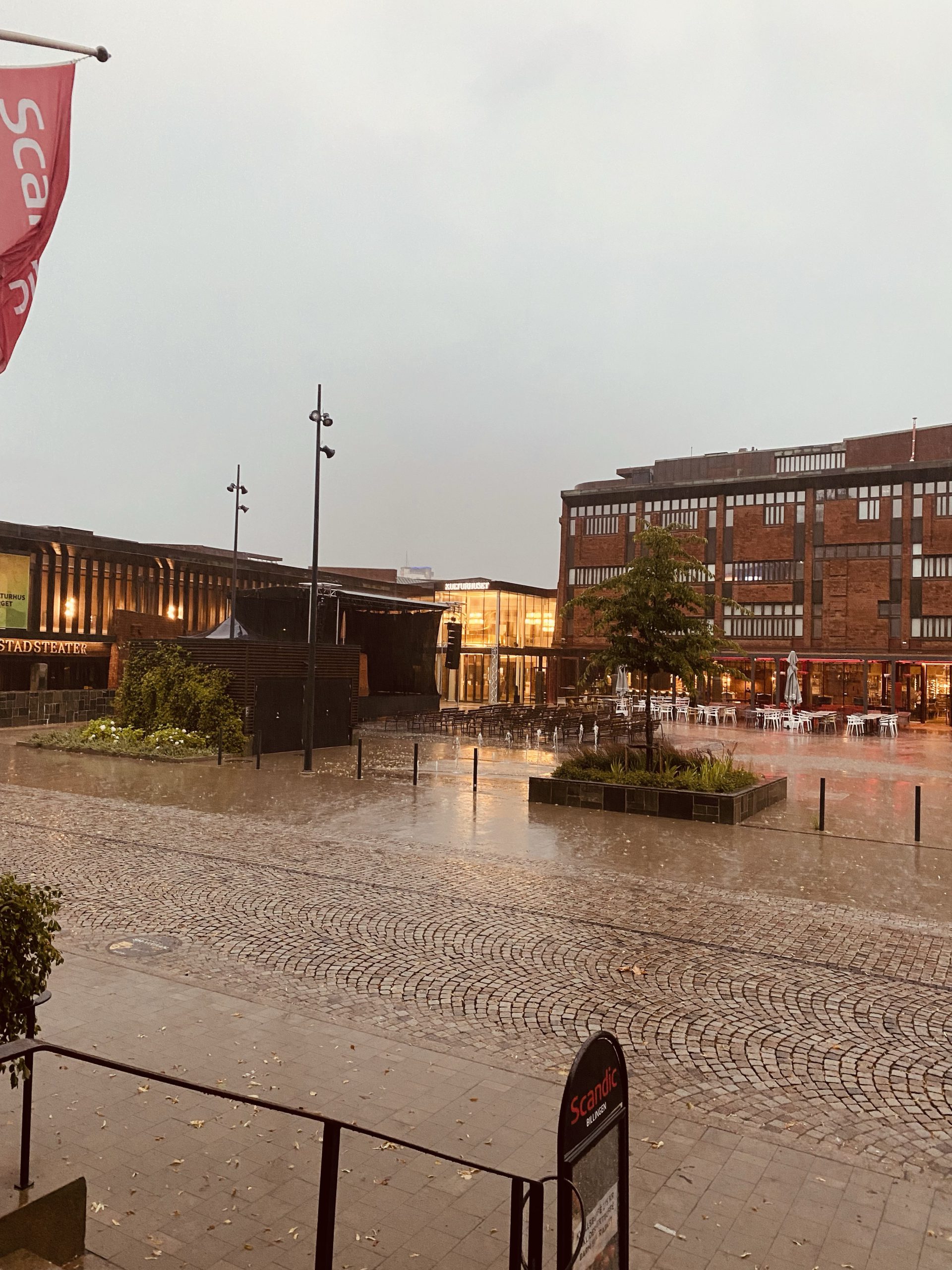 Lagom till vi hade installerat oss så bröt världens skyfall ut för andra ggn. Tidigare när vi installerat Milo så bröt första skyfallet ut. På vägen från Skara till Skövde stannade vi och flyttade en gigantisk gren som flugit ned på vägen. Det låg grenar, kvistar och löv överallt. Saker flög. Flaggstänger gick av och tydligen hade även husvagnar flugit. Ett riktigt oväder alltså.