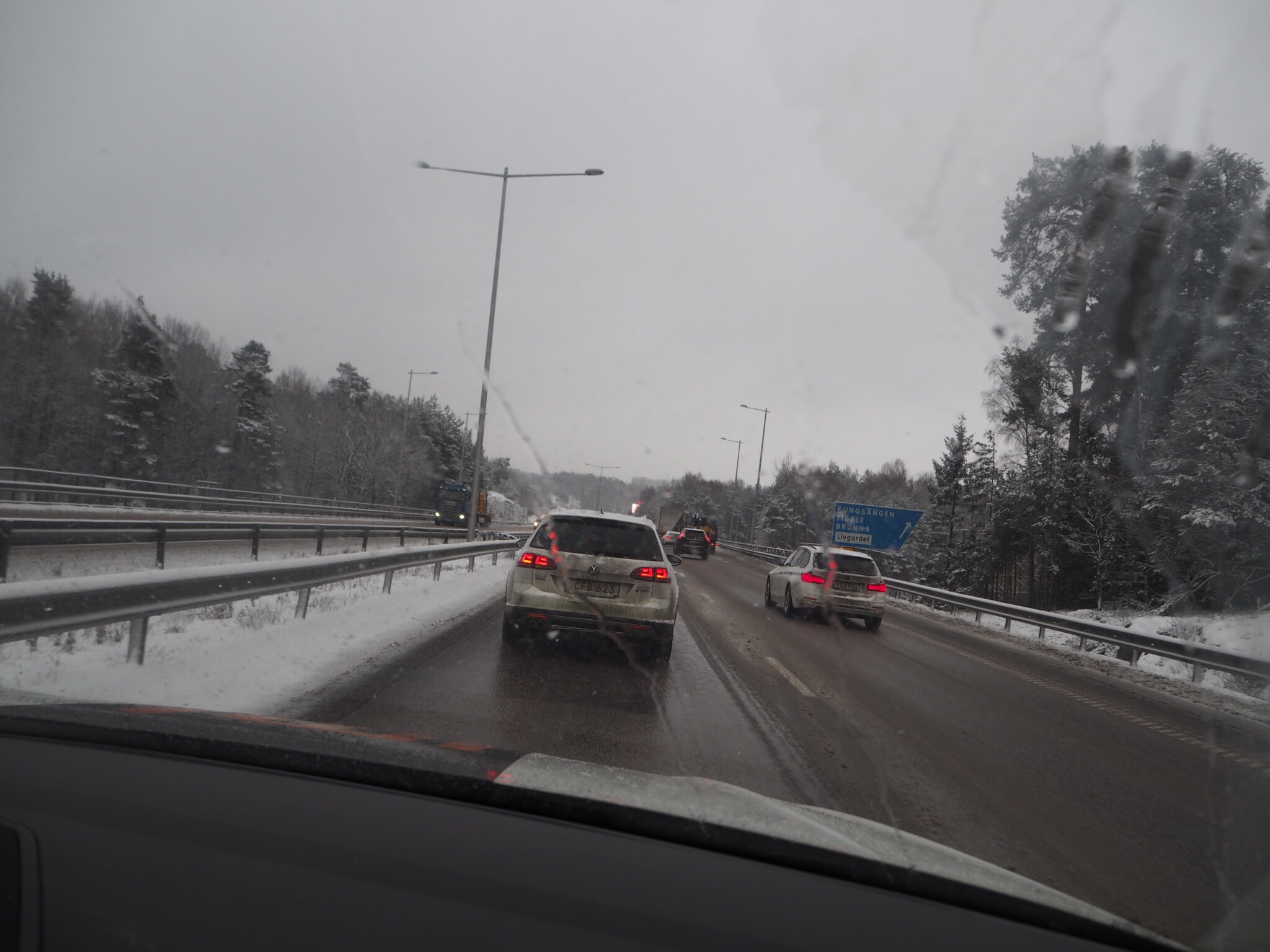 Först ringlade kön och sen tog det stopp. Visade sig vara någon som blivit påkörd av en lastbil bakifrån. Olyckor i färskt minne så jag blir såklart påverkad. Hinner tänka att den personen åkt till jobbet som vanligt i morse och så blir saker inte alls som man tänkt sig. Hoppas så att allt gick bra!