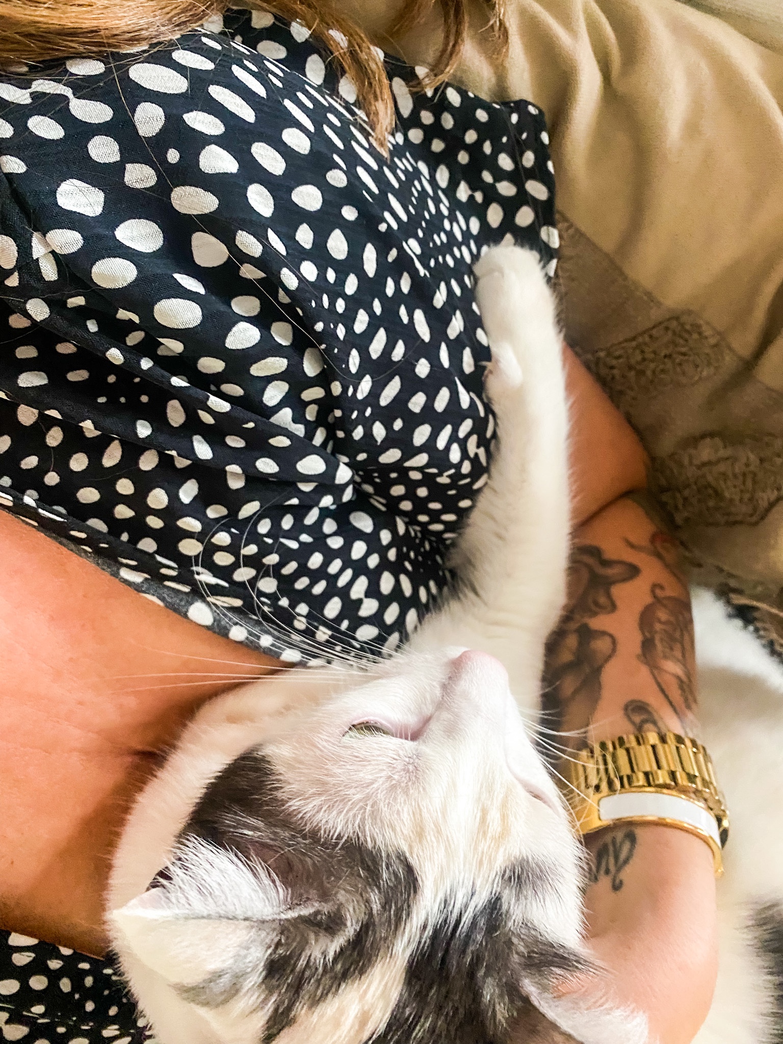 Har haft en väldigt gosig och efterhängsen katt på mig dessa dagar. Hon blir bara mer och mer fäst vid mig. Där jag är, ja där är hon. Springer jag bara upp för att kissa på övervåningen, nog fasen är hon där bredvid mig på 2 röda. Hon börjar bli riktigt vresig mot Milo också, så fort han är i närheten av mig så markerar hon direkt att jag är hennes ägodel. Det har gått så långt så hon faktiskt gärna river till på honom också. Hur får man bort sånt beteende? Det är ju inte så trevligt direkt…. 🥹