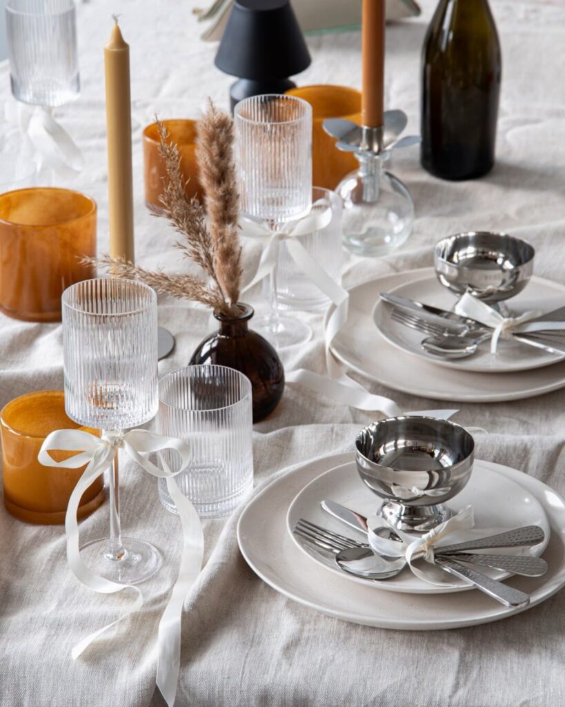 Blev lite småkär i dessa små efterrättsbägare (<klicka), så himla fina! Kolla så fint dom gjort här ovan, en fantastiskt vacker dukning. Snacka om härligt höstinspirerat med dessa färger. Älskade att de hade knutit rosetter runt glasen och besticken, så himla fint! Den lilla uppladdningsbara lampan ångrar jag att jag inte inhandlade, så perfekt till hösten & vintern. Förresten, skulle köpt alltihopa ovan, så fin dukning till hösten som sagt!
