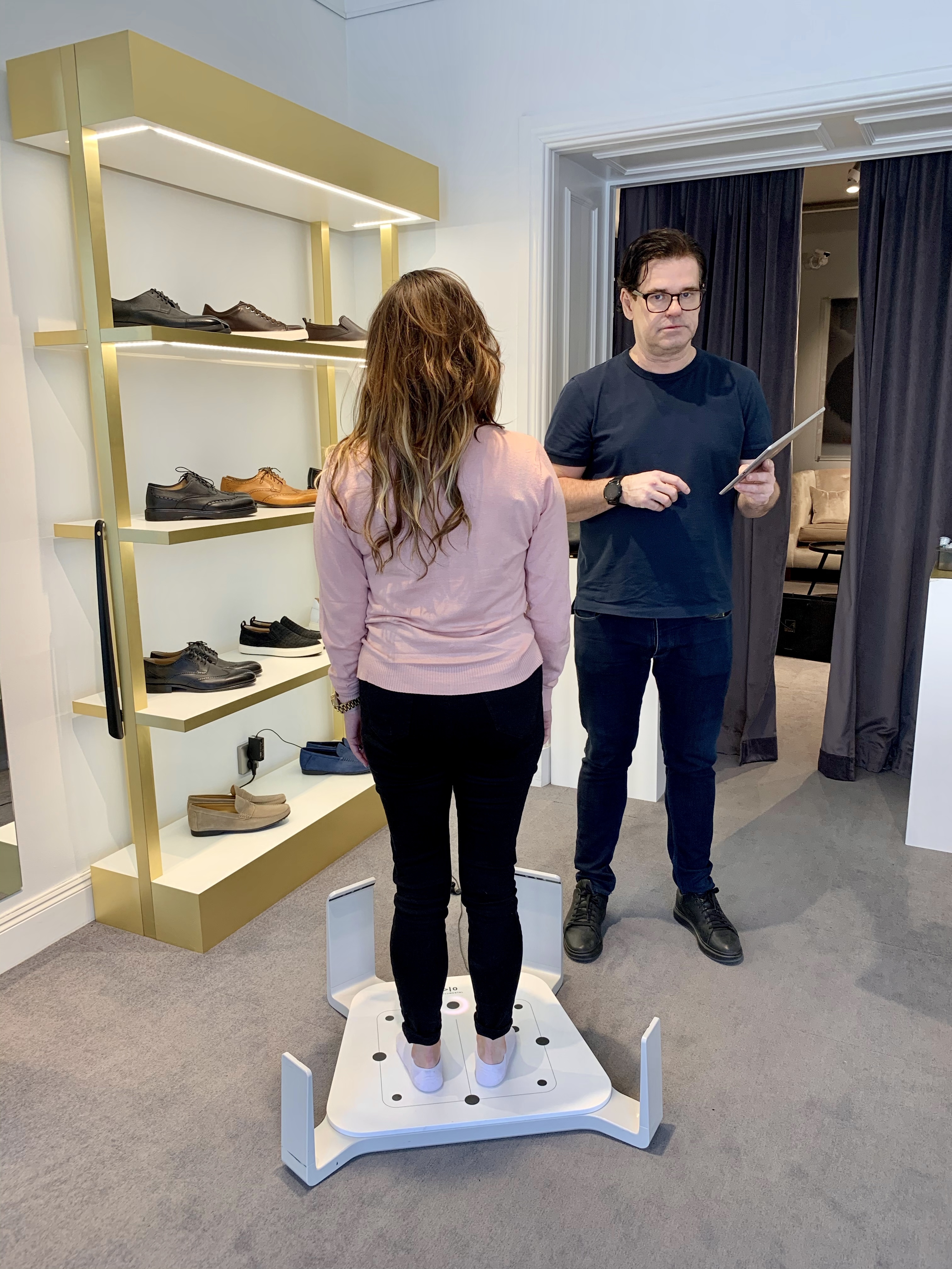 Ja men sen kom vi till butiken…det var här man förstod att det inte riktigt var som med vanliga skobutiker. Detta var på riktigt sååå intressant. Här scannades först och främst fötterna i en världsledande scanner för att se ”problemområdet” med ens fötter. Min vänstra fot var lite inåtböjd och detta beror på lite olika saker. Jag har olika längd på benen osv. Detta i sin tur kommer ju ifrån ryggen. Så här hittade han mitt problemområde direkt. Detta är det också de vanligaste problemområdena hos människan.Jag blev så inihelskottas impad! Faktiskt helt blown away av hur mycket jobb det ligger bakom dessa fantastiska skor.