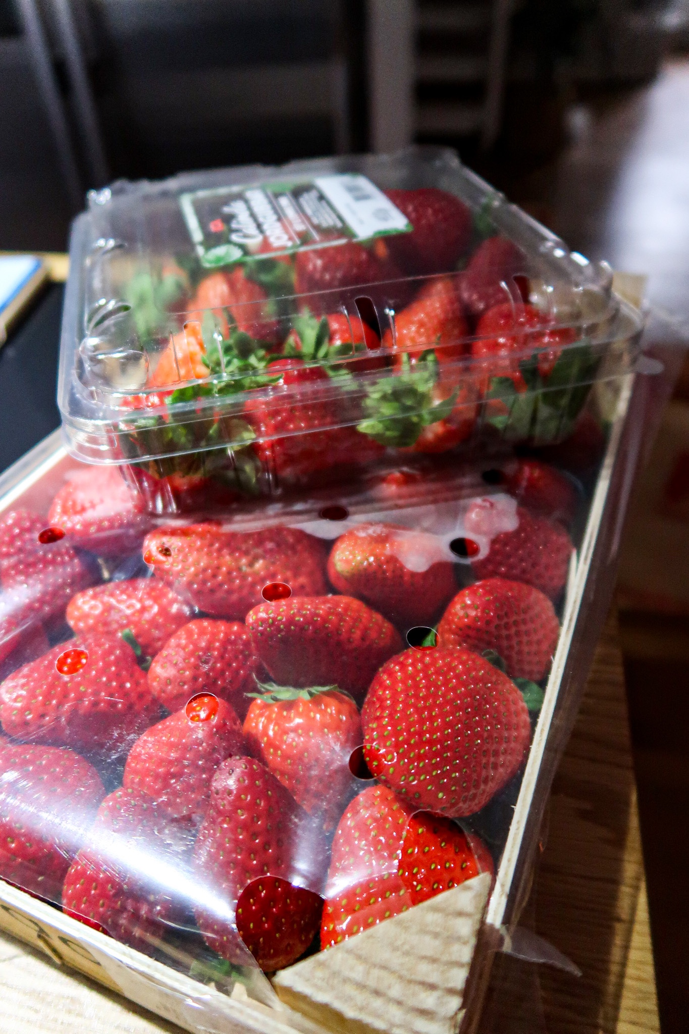 Jordgubbar, blir man inte bara skitglad av det? Jag köpte alldeles för mycket så i helgen gissar jag att det blir mycket efterrätter och kanske någon bakning med jordgubbar. Oh! Måste berätta! Jag gjorde en sallad på jordgubbar, skivad banan, sallad och basilika häromdagen. Ämen hörni, det var sååå gott! Testa! Sen lite balsamico på det, mums.