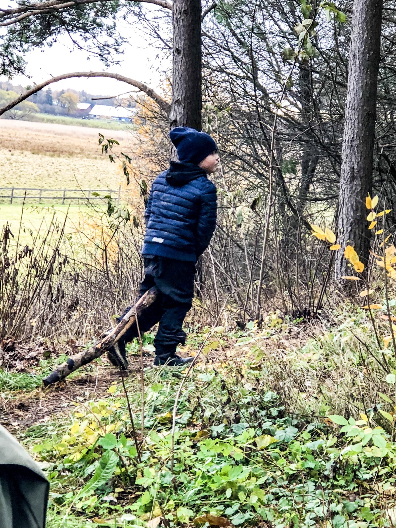 Milo hade fullt upp med att släpa stora pinnar och rulla ned för släntarna. Kinderna röda och friska och såååå långt från digitala hjälpmedel av olika slag. Love it!