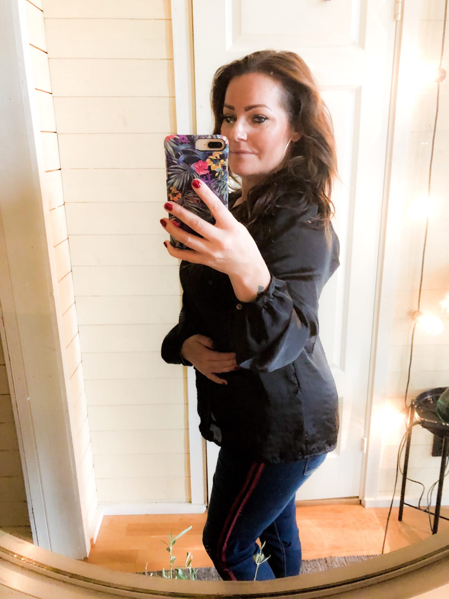 Sorry skitig spegel, måste komma ihåg och putsa den alltså! Många som frågat om mina byxor. Har dom på mig idag, skönaste!