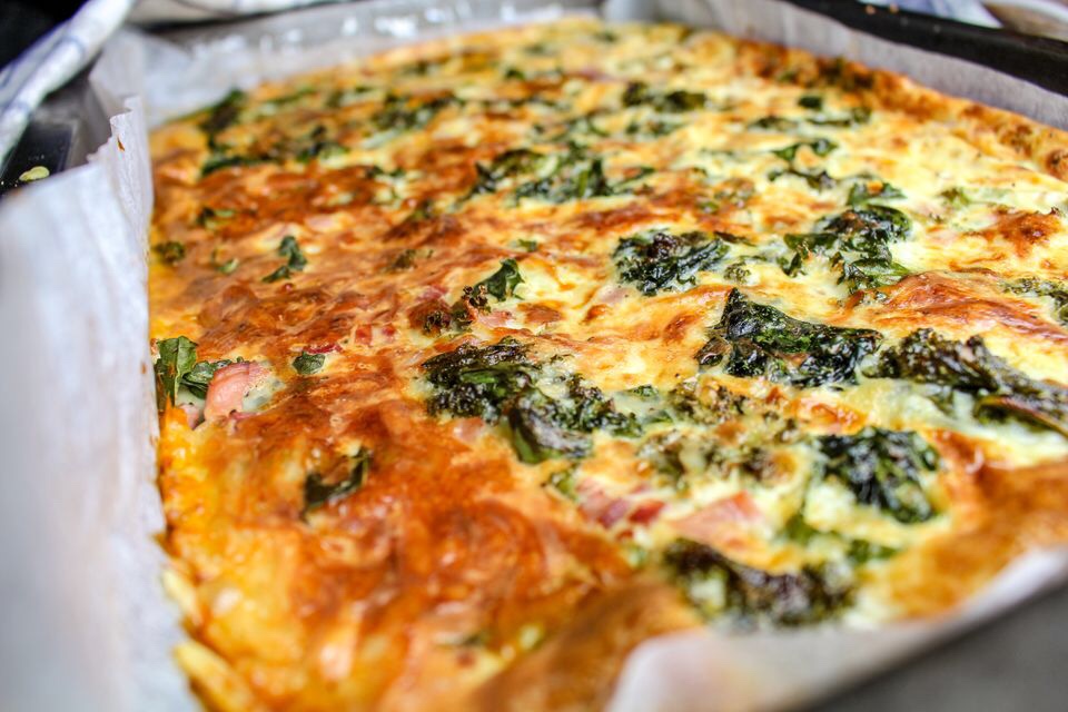 Ugnspannkaka med ost, skinka och grönkål