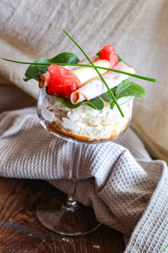 Letar du efter en kall förrätt i portionsglas till midsommar, buffé eller fest? Då har du kommit rätt, herreminjee så gott detta blev hörni! Fyllningen är maaagisk. Den här smörgåstårtan i glas med kalkon, gurka och en krämig sweet chili-röra är både enkel att förbereda och vacker att servera. En modern twist på klassikern som passar året runt… särskilt när du vill imponera med något lättlagat och riktigt lyxigt! Längre ned tipsar jag om hur du kan variera den.