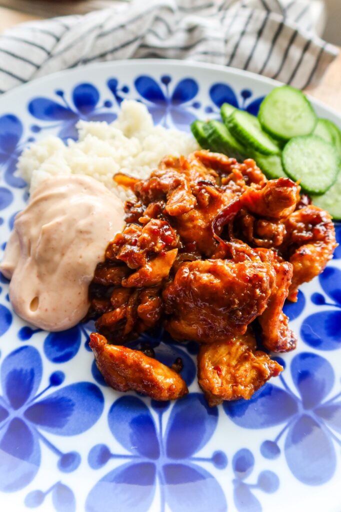 Snabb Chilikyckling med srirachamajjo och smörigt ris