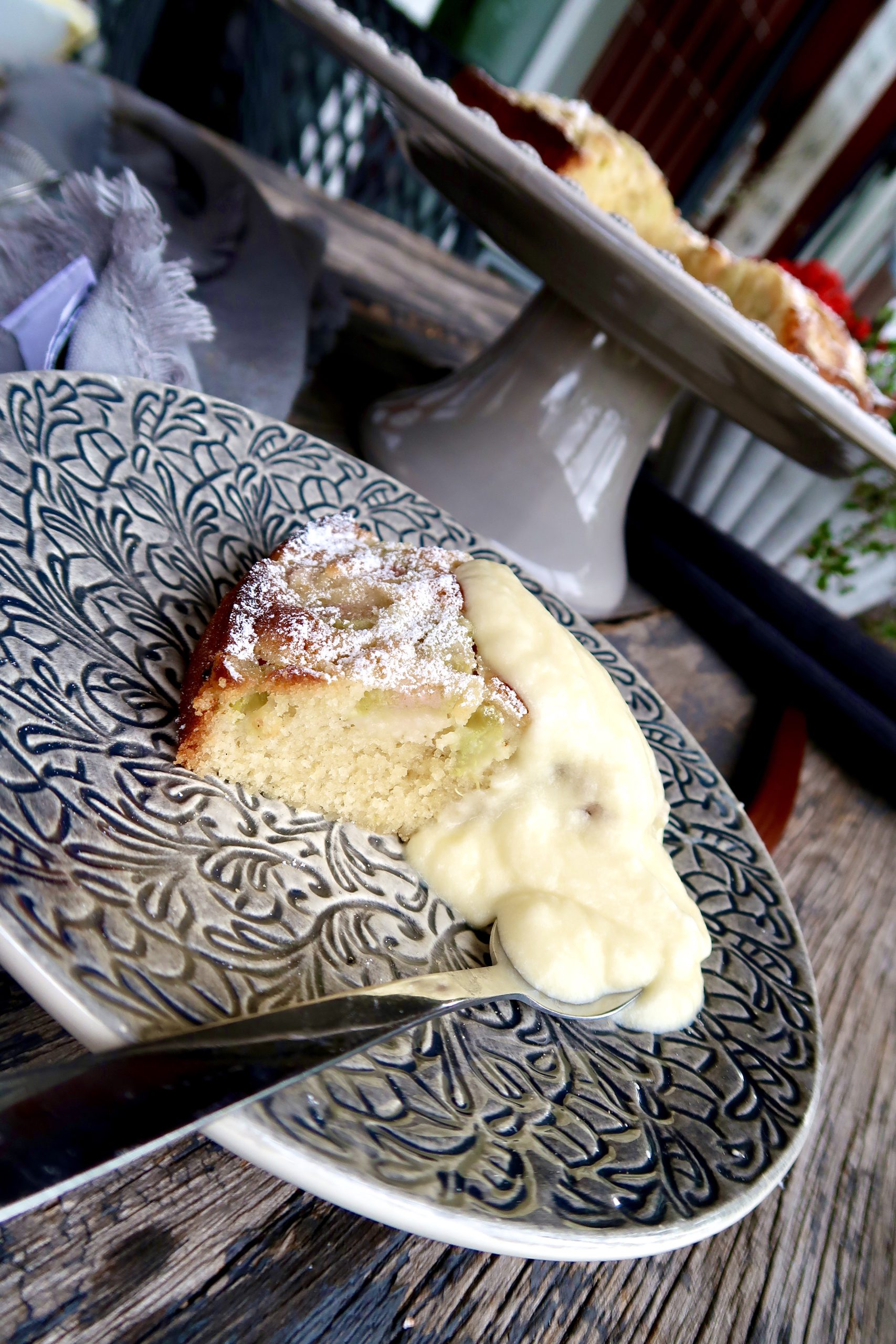 Gjorde rabarberkakan idag med vårens första rabarer! Supergod!