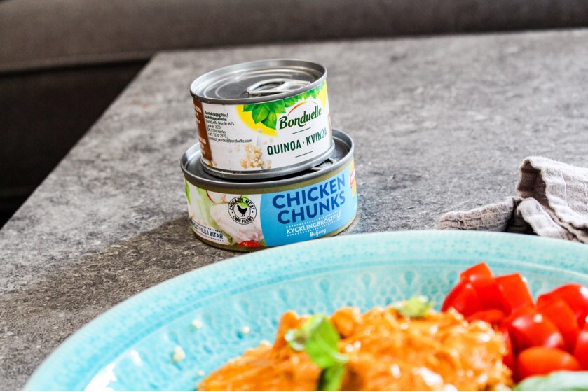 Något som jag alltid har i kylen är konserverad kyckling och quinoa. Låter kanske skitäckligt med konserverad kyckling men det är kanske det smartaste påfundet ever! Dessutom goda perfekta kycklingbitar som är klara att äta direkt. Men hur bra? De ligger i en speciell lag så när du öppnar konserven häller du bara ut lagen så är det ”ready to eat”.