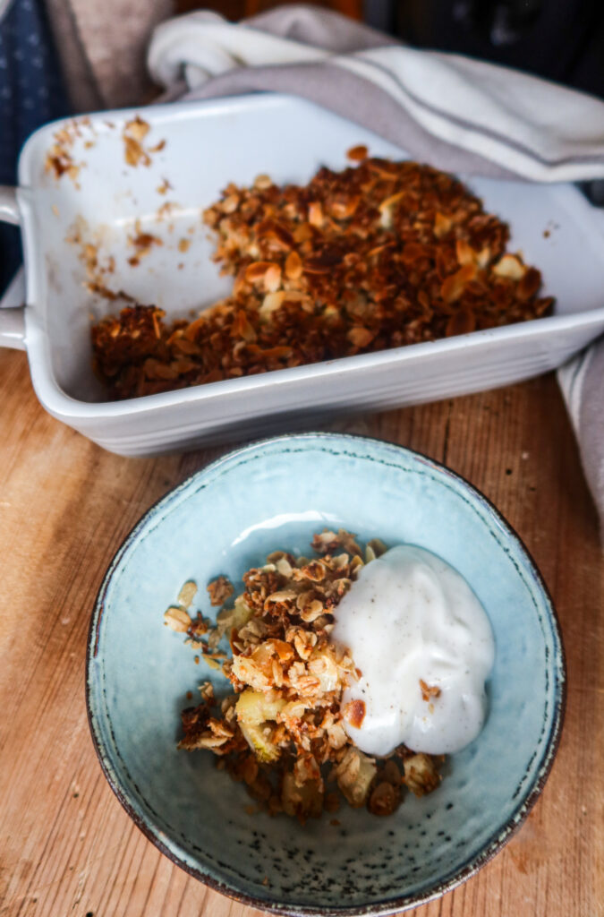 Den blev så himla frasig och god och blev så god till min vaniljsås jag gjorde av kokosyoghurt, lönnsirap och vaniljpulver. Riktigt riktigt gott!