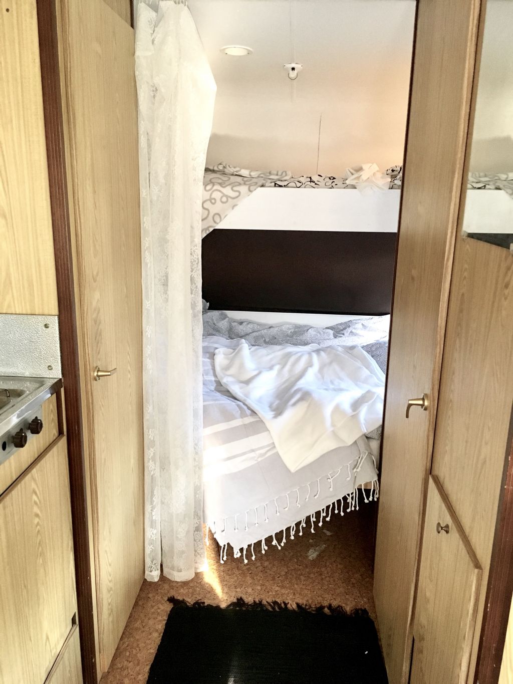 Hemma ska jag sätta tänderna i den här husvagnen direkt. Har svårt att tro att jag kan låta bli det…. Det ska påbörjas måleri och fix för det första. Iiiiiiih vad jag längtar efter att se hur den blir när den blir alldeles ljus invändigt?