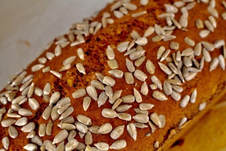 4) Klä en brödform med bakplåtspapper och klicka i smeten i den. Grädda på 175 grader i ca 60-70 min.