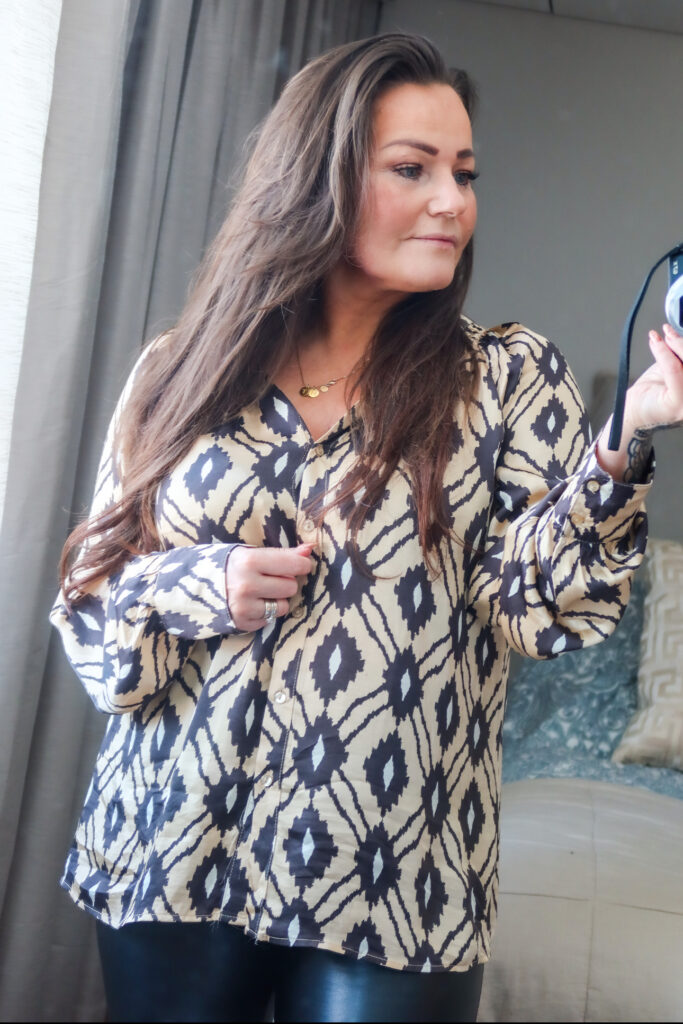 Mönstrad satinblus (REA) // Coatade leggings (supersköna)