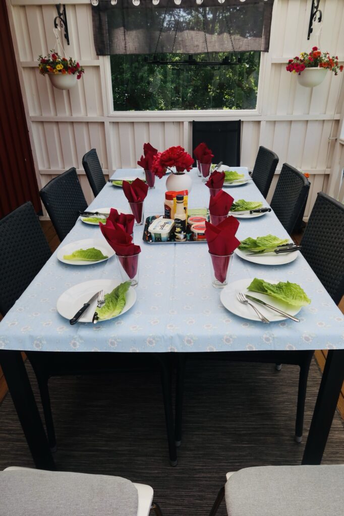 Mamma hade dukat åt oss på altanen, det var o också då vi åt de där fyllda salladsbladen (<klicka för recept) som var helt magiskt goda till grillat.