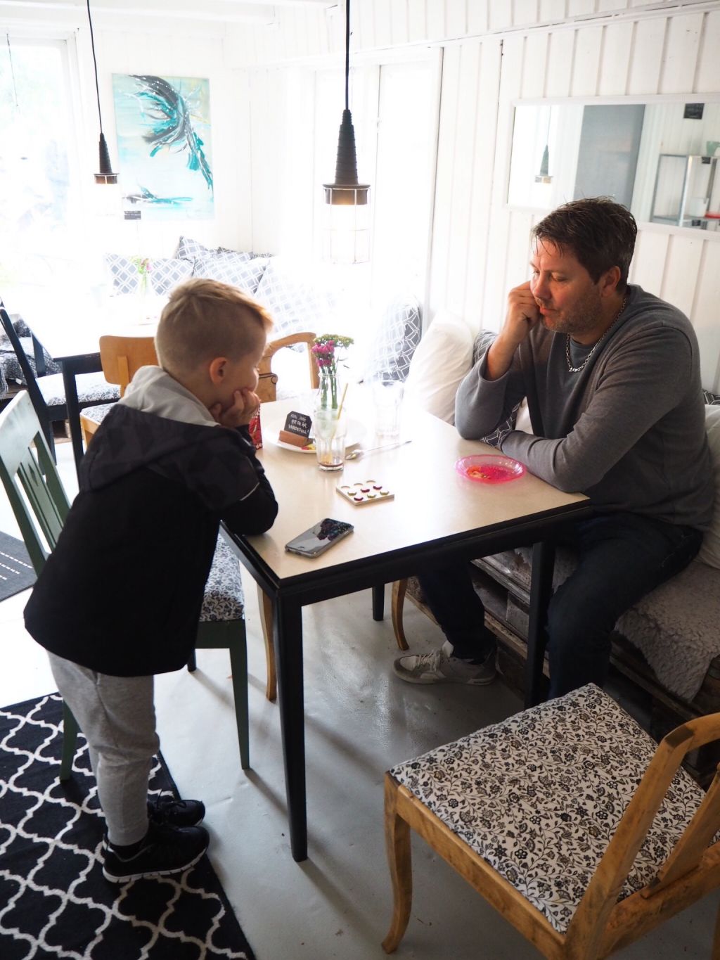 Idag kom exet Magnus ut till Kaffestugan och hängde lite med oss. Spelade tre i rad med Milo och sen snodde han också med sig honom. Så kul, Milo log från öra till öra när han skulle få åka med Magnus.