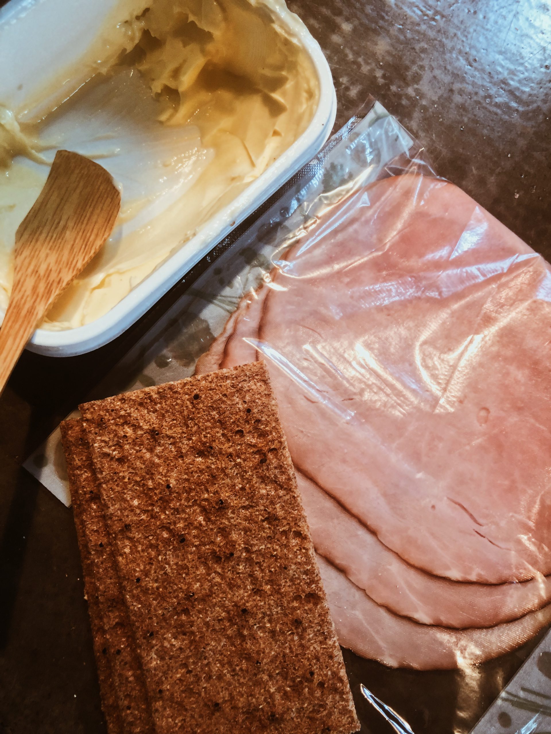 Har ingen direkt matlust så det blev finncrisp med ost och skinka och en kopp grönt te. Fråga mig vid 8 igen, kommer förmodligen vara vrålhungrig då.