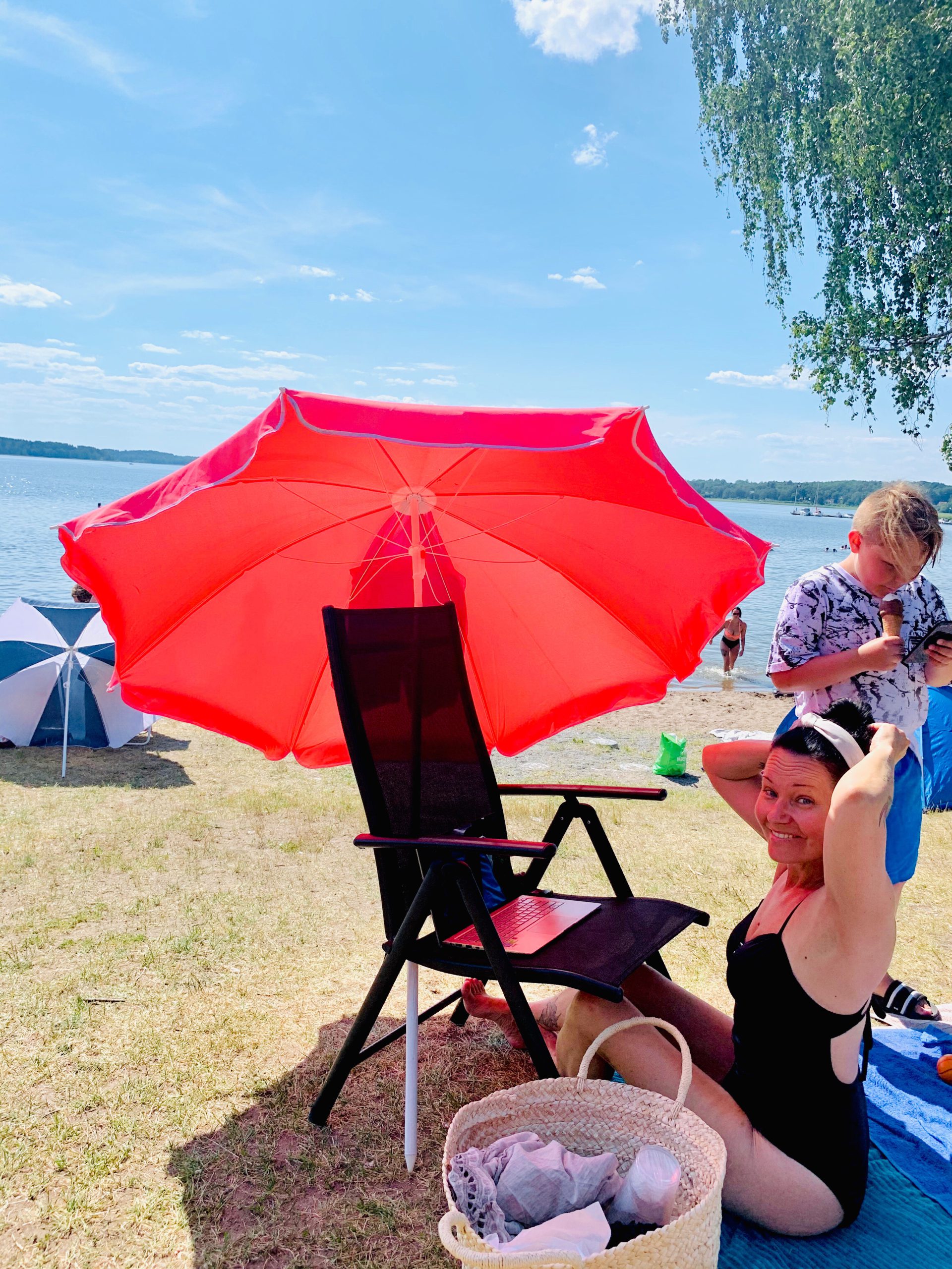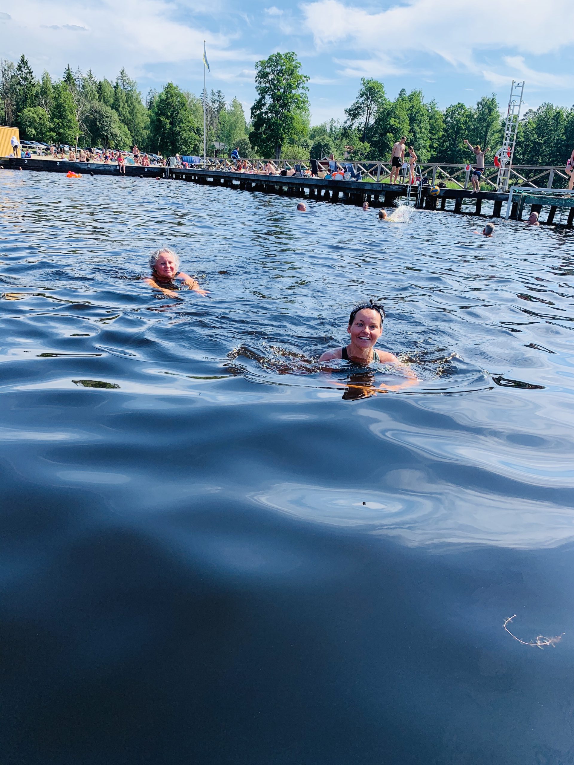 Gårdagen var vi återigen tillbaka i Sala och på Måns Ols badstrand. Tonys bror med familj var där en stund också så kidsen lajade sönder i vattnet. Såå kul att mamma och pappa också tittade förbi en sväng. Mamma peppade mig att simma några varv med henne vilket ju var uppiggande som tusan. Även om tempen visade 25 grader så tyckte jag det var kallt, allt under 30 är kallt. Haha…. men wow så härligt efteråt. Så värt att pina sig i för när man väl är där i så är det ju så skönt! Från att aldrig bada till att bada 3 ggr på bara någon dag. Wow! Vad händer?