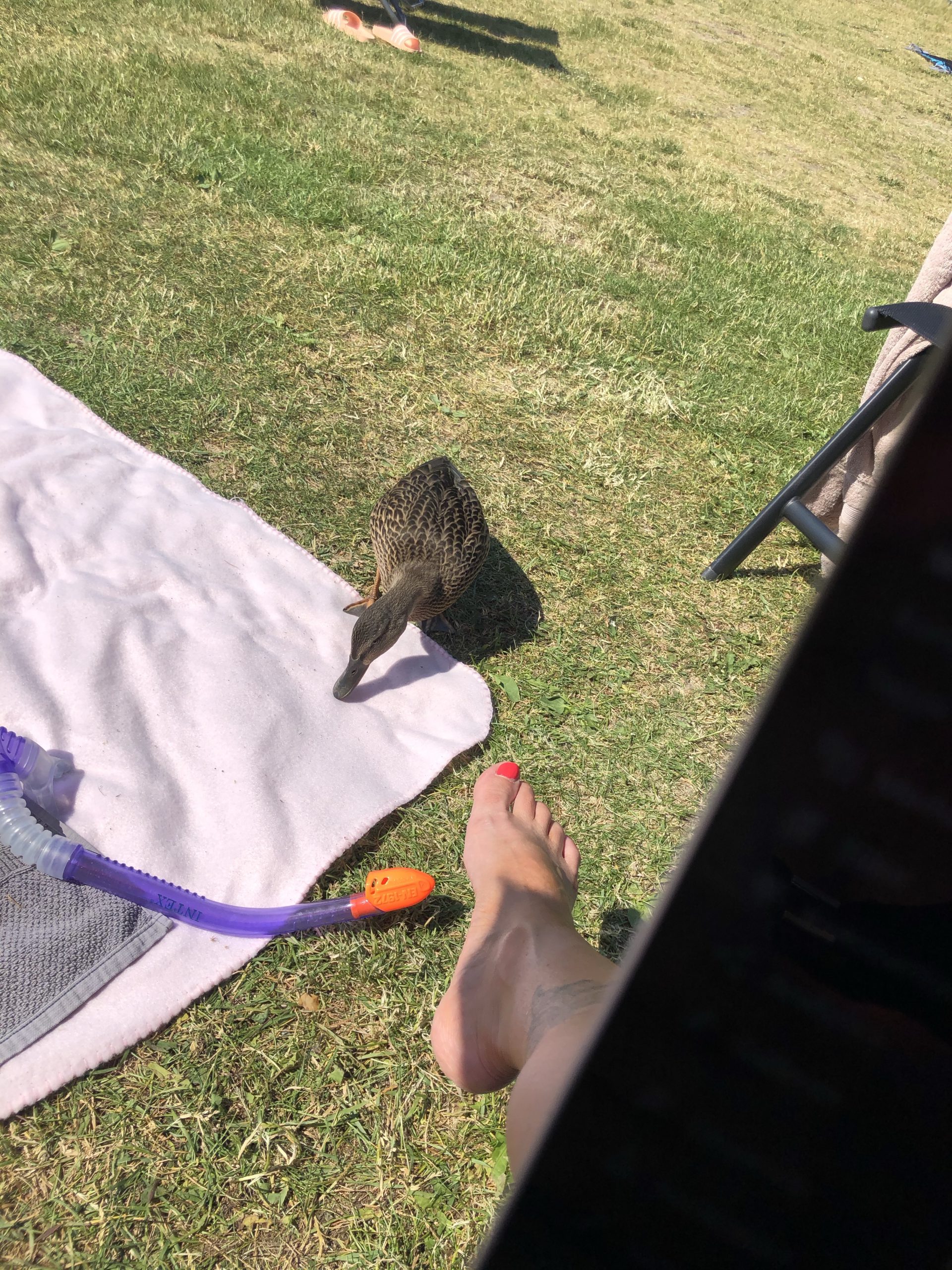 Som ni ser hade vi närgångna besökare hos oss. Änderna är nästintill tama och kommer förbi både en och hundra gånger för att se om du har någon smula att bjuda på.