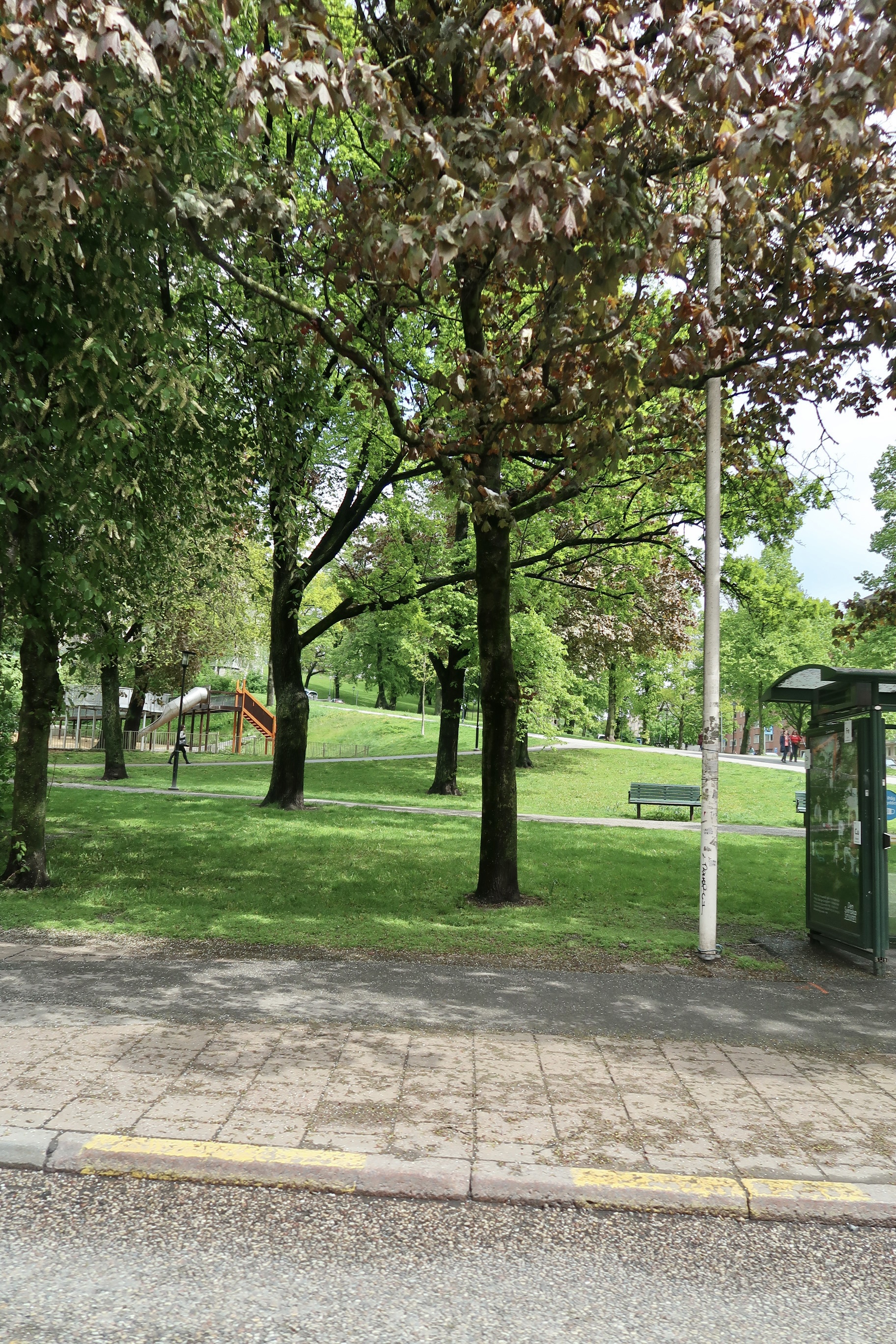 Fick så mycket fina minnen när jag kikade upp på den här slänten. Här ligger Vanadisbadet precis bredvid. På gräsmattan här uppe hade vi en av våra första dejter jag och Tony. Vi käkade picknick på en filt i gräset. Sååå mysigt. Ja tills Tony blev så skitnödig så han höll på att inte kunna hålla sig. Han sprang bort till den Cypriotiska restaurangen på Valhallavägen. Hann precis också. Där hade restaurangen just öppnat och några i personalen satt och snackade vid ett av borden previs utanför toan. Tony råkade dessutom ut för rallykacka o v det var inte tystlåtet. Hahaha….jag orkar inte. Inte jättekul på en av de första dejterna. 🤣🤣❤️ Det där har vi skrattat gott åt.