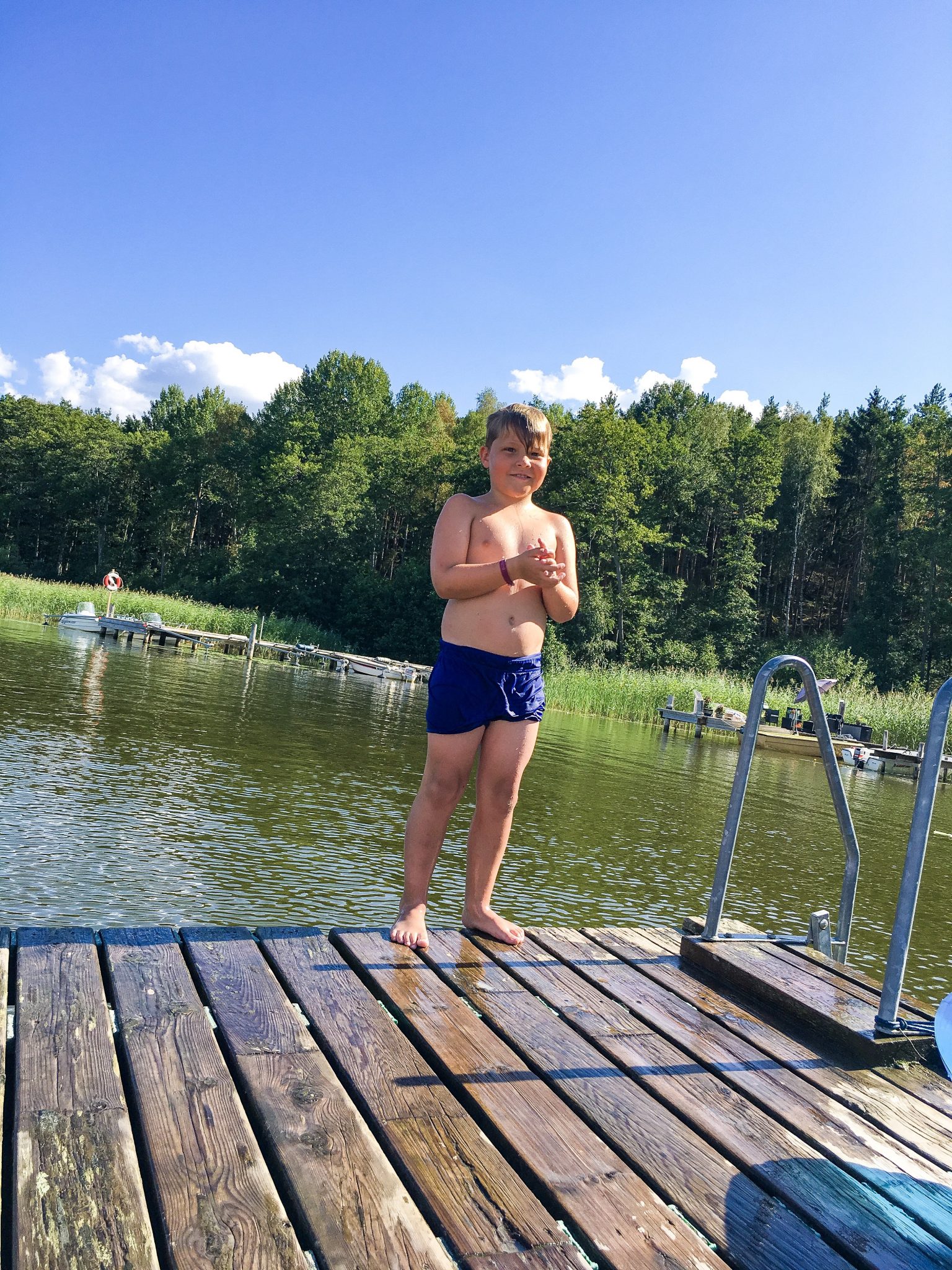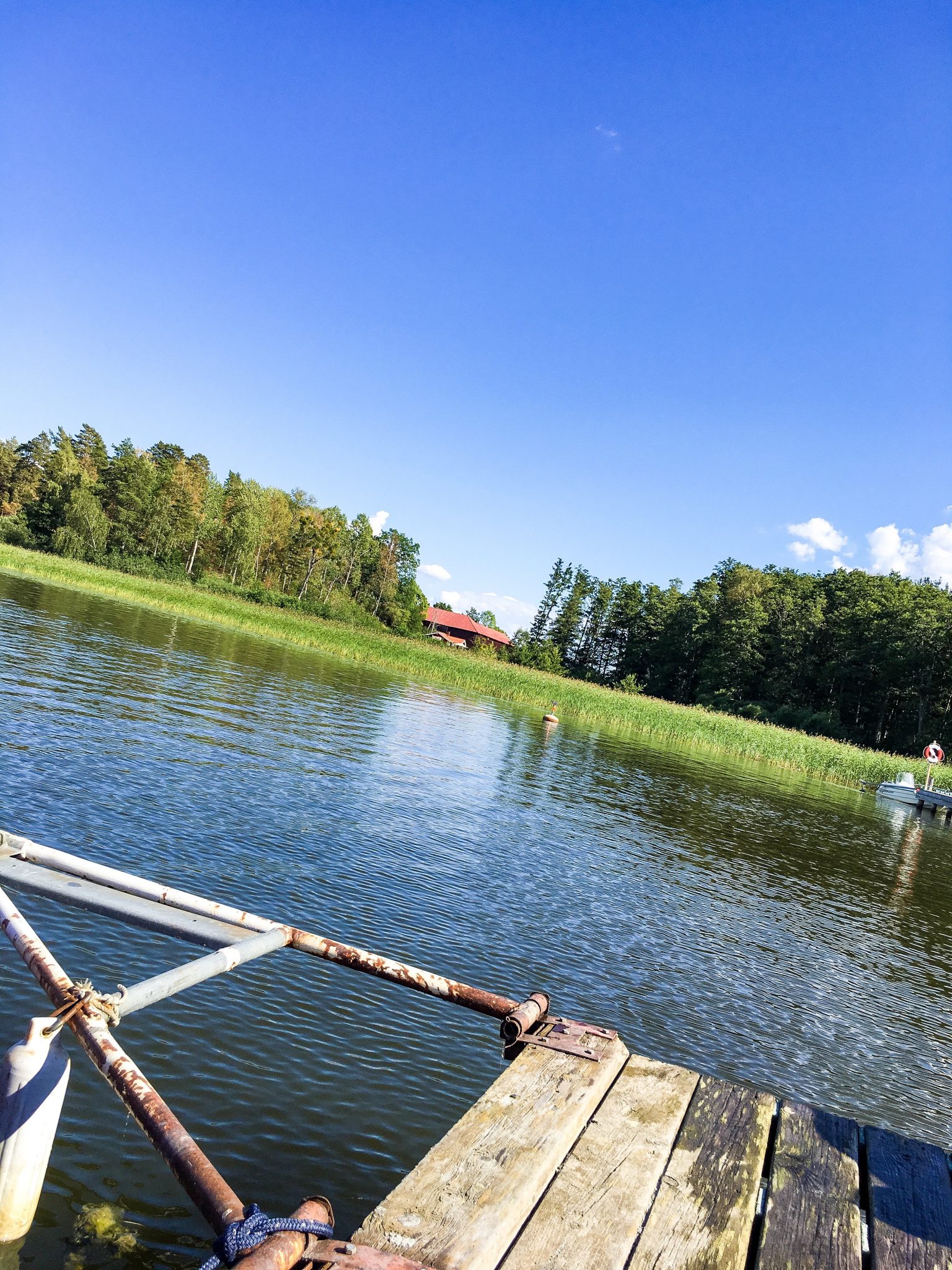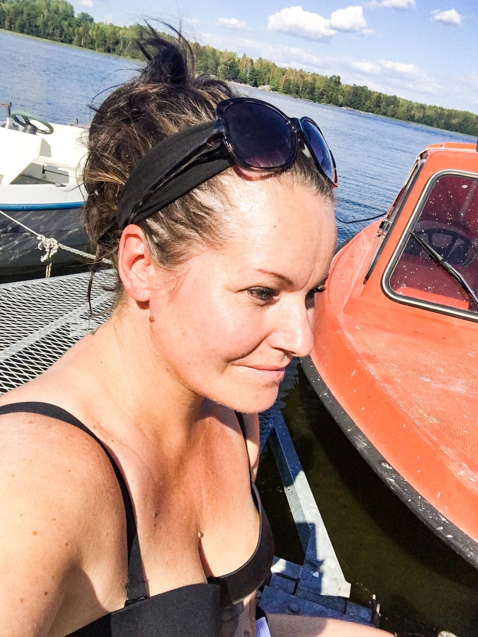 Sedan for vi iväg mot stranden och hamnen. Där blev vi upplockade för att åka över till Bryggholmen.