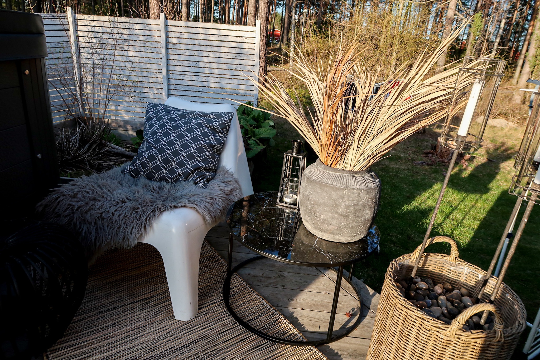 Här är ett till sånt ställe. Istället för en kal och stor altan utan någonting kan man göra en skön liten plats med mys. Vi utnyttjar alla såna här platser till max när dom finns.