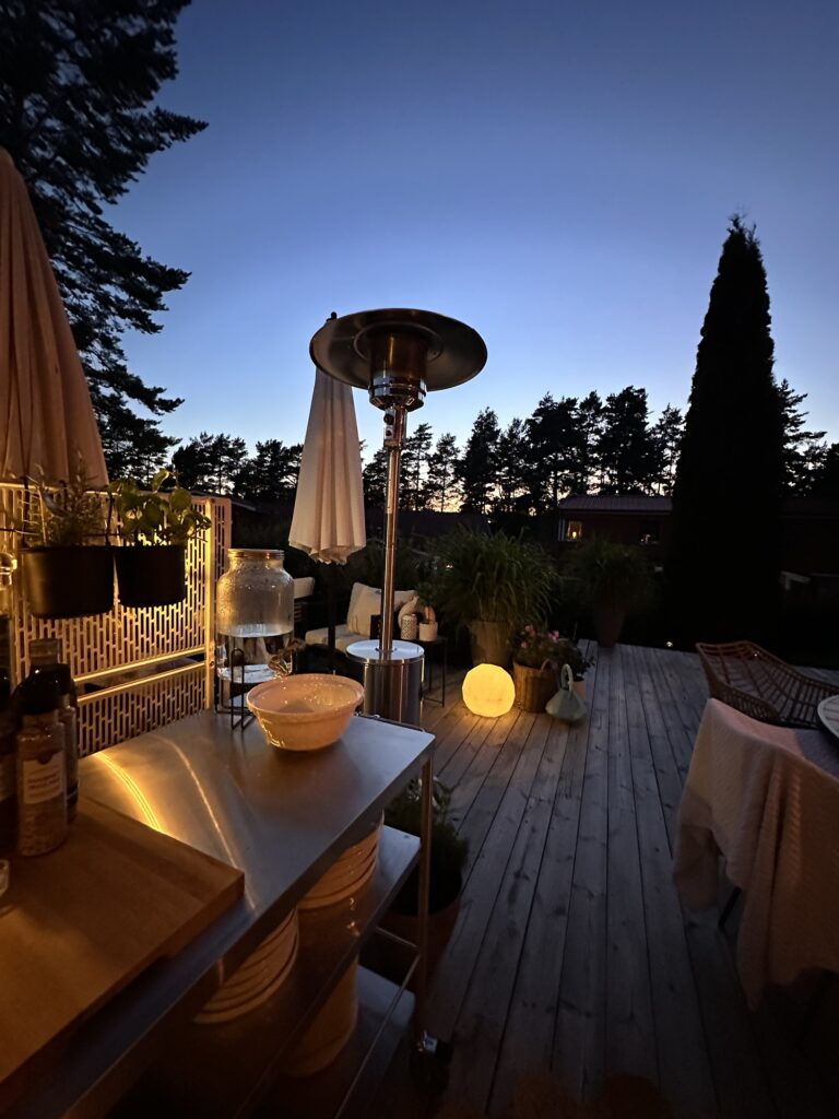 Det var så mysigt och dra på värmaren, krypa i en kofta och dricka en stor kopp te ute. Tror klockan var närmare 23 innan vi till slut gick in. Det är höjdaren av sommaren känner jag. Att kunna vara ute sent på kvällen.