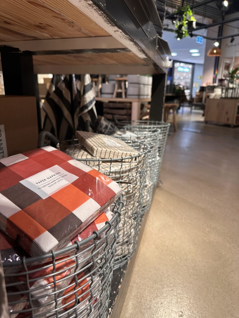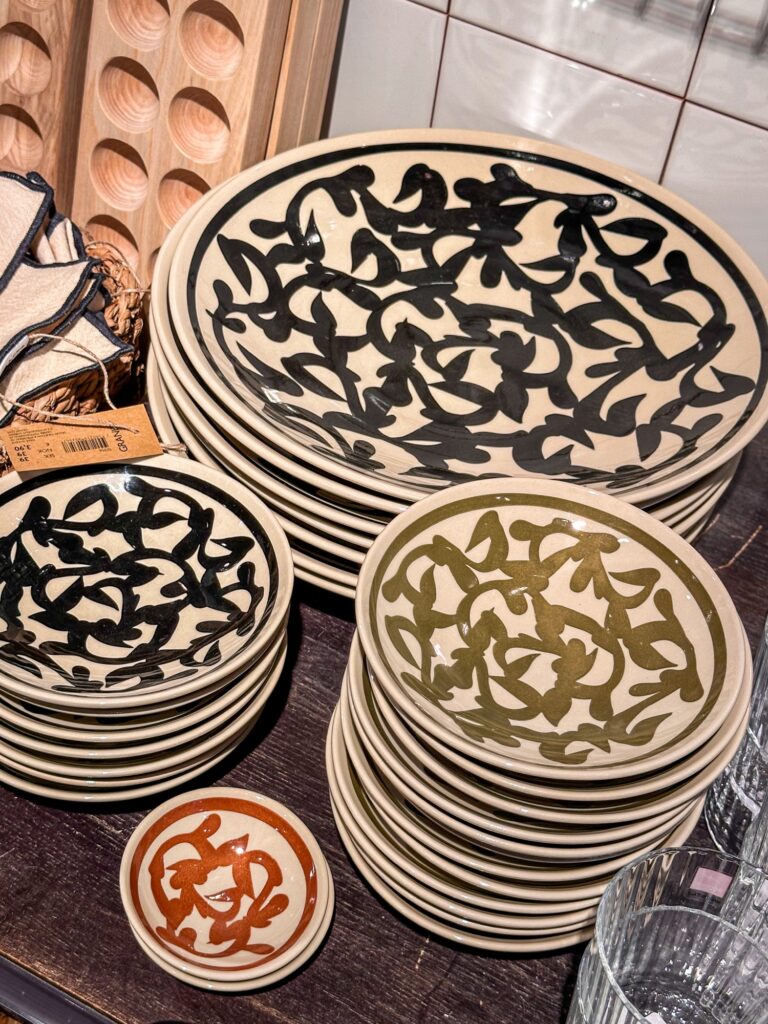 De här tallrikarna (<klicka) var också så snygga! Såhär är det ju verkligen supersnyggt att duka, stod och fingrade på servettringarna (<klicka), ångrar nu att jag inte köpte dom. Så snyggt, får lägga en beställning tror jag. Bordsunderläggen (<klicka) till var pricken över i:et. Bomullsservetterna (<klicka) med svart kant – wow!