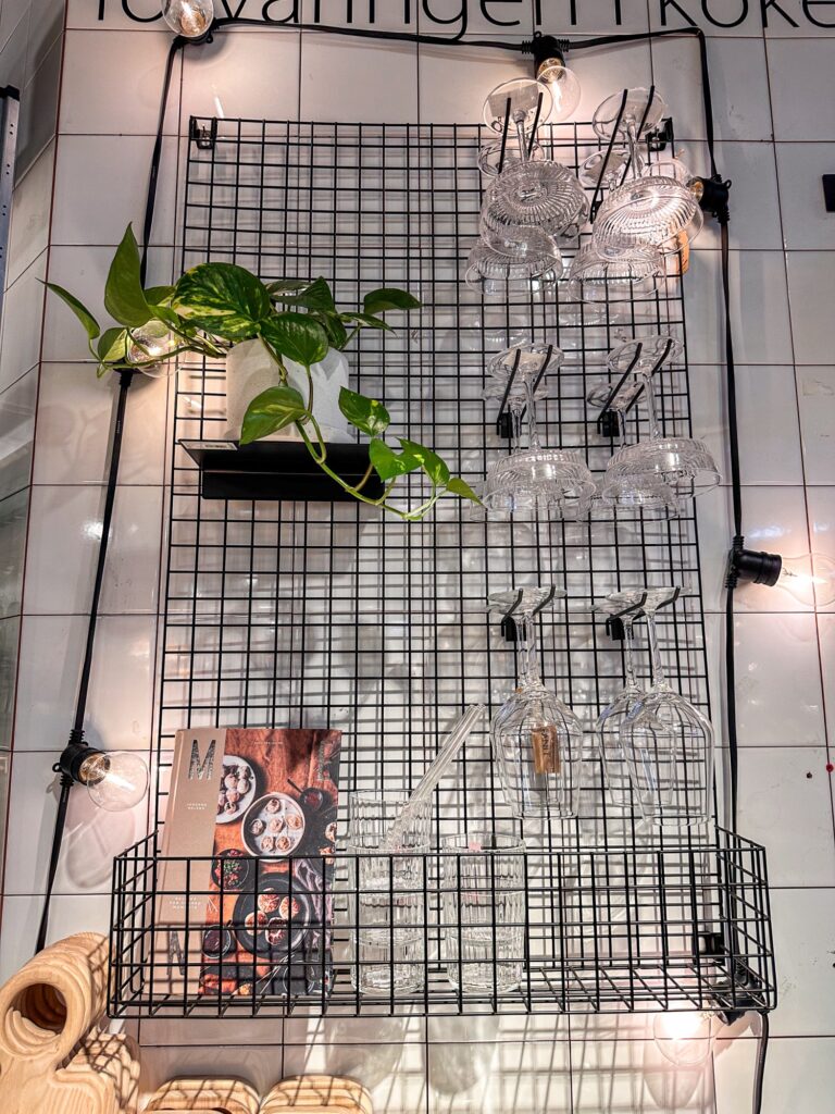 Den här förvaringshyllan för vägg (<klicka) funderar jag på att köpa till köket. Sååå snygg och helt min stil. Du kan hänga vinglas på den då det finns såna smidiga vinglashållare (<klicka) till den. På hyllan därnere har jag tänkt ställa alla mina kokböcker. Det fanns också väldigt fina glas (<klicka) att välja på! Sen har jag tänkt att jag ska hänga upp en vitlöks fläta på den och på hyllan med blomman en stor färsk timjan som jag ska ta in från trädgården.