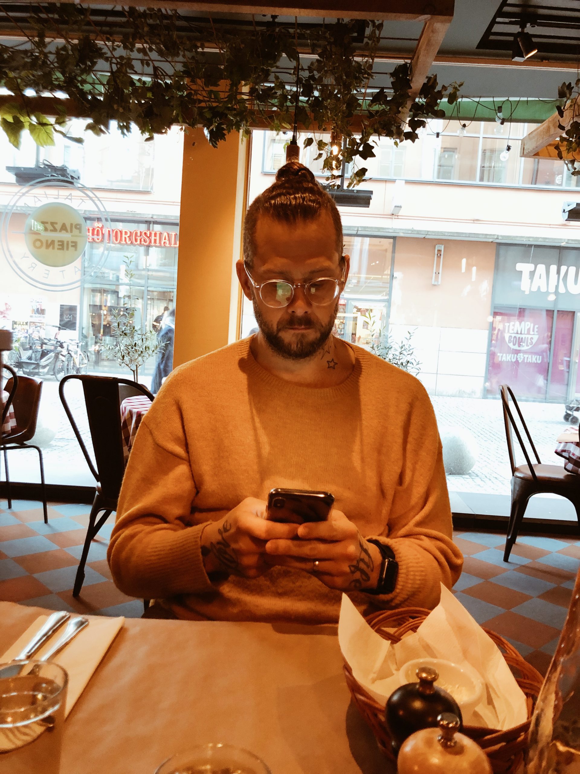 Min upptagna man! Ska man ha med honom att göra när det är en arbetsdag så ser det oftast ut såhär. Han håller sig ifrån kundmejl när han äter i alla fall och det är ju bra.