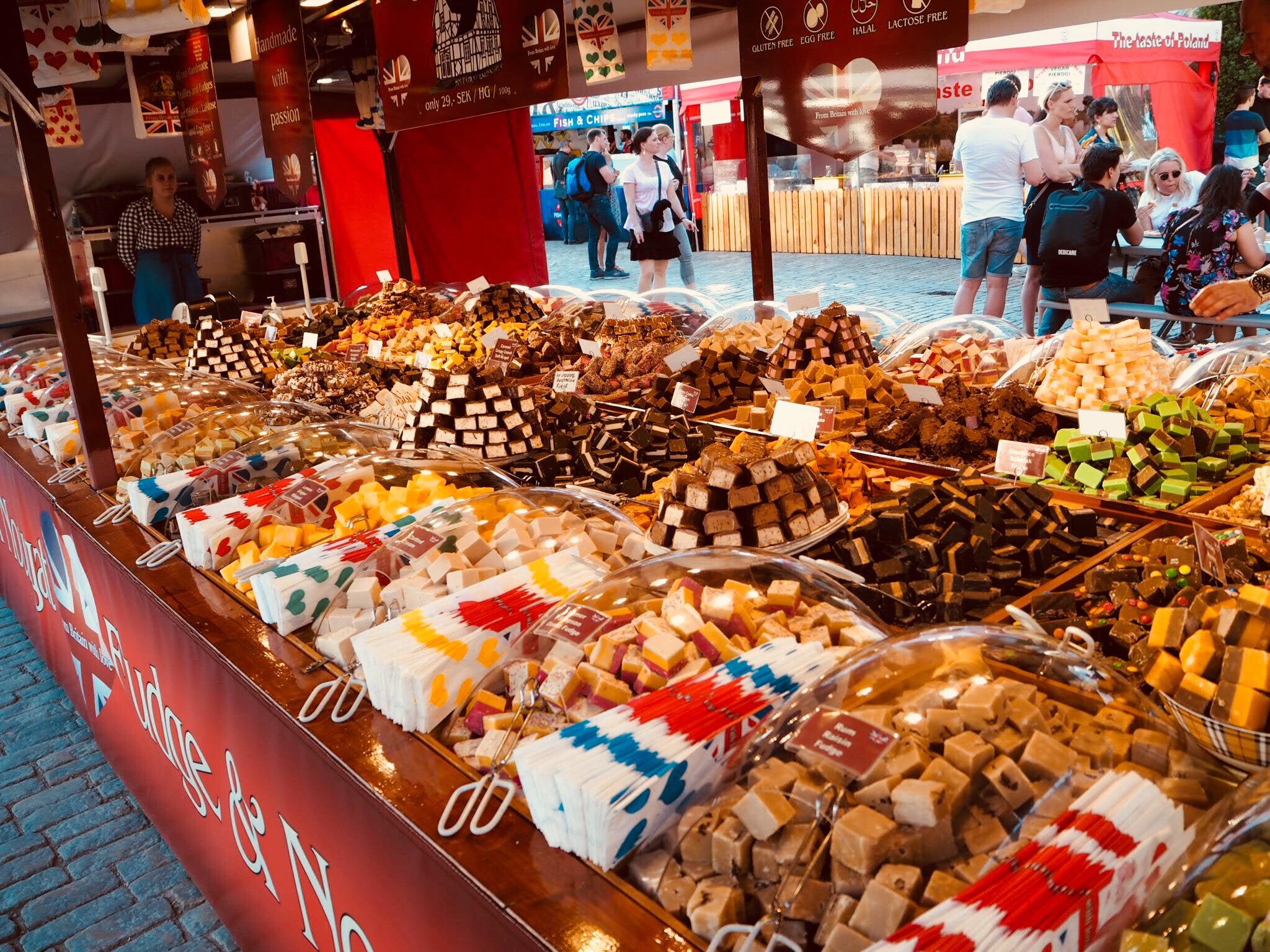Det enda vi köpte var dessa galet stora fudge som fanns i hur många sorter som helst. De största bitarna var som disksvampar liksom.
