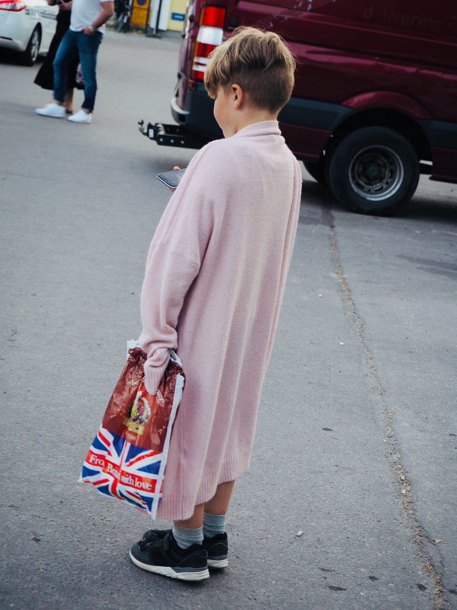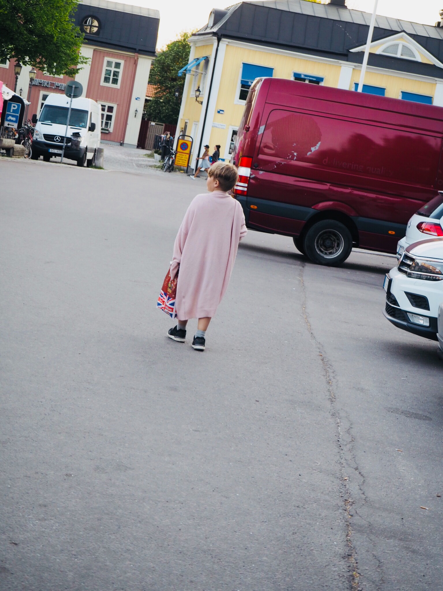 Kolla in den här sötisen med min kofta och sin lilla påse med fudgen i? Såg att två damer som vi passerade tittade lite konstigt på honom….jag har en galen ekolod när det kommer till sånt där alltså. Dock så struntade vi i det, han hade ju en egen tröja med mammas var skönare. Tyckte han var så söt i den.