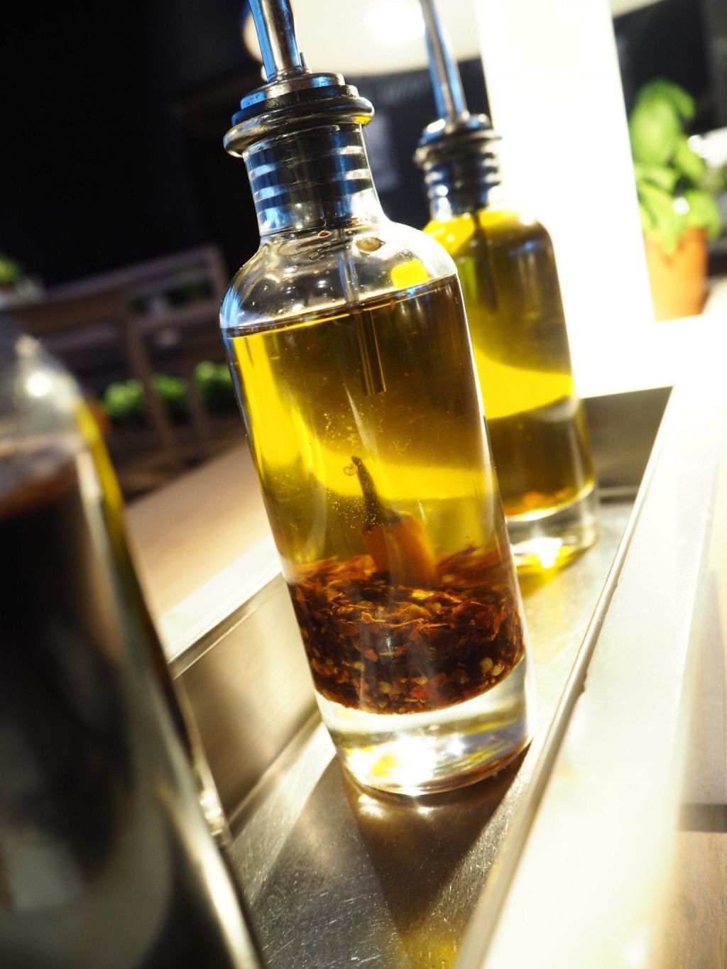 Älskar att man kan plocka färsk basilika själv och hälla på olika oljor som man vill. Men helt ärligt har jag inte hajat alla oljor och rödvinsvinäger? Vad häller man det på? Är det tänkt för pasta eller sallad? Eller brödbitarna? Eller dricka direkt ut kanske? Haha…