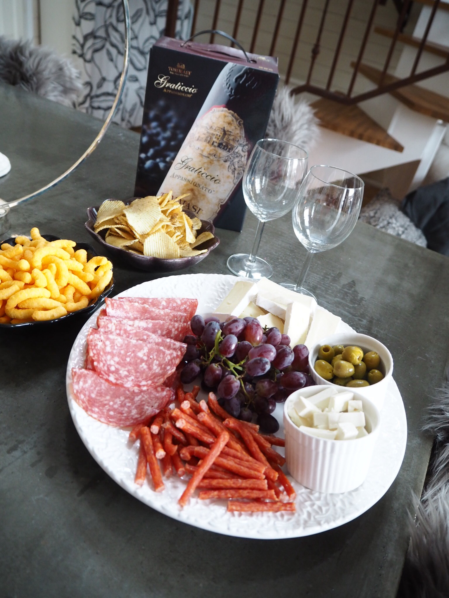 Jag fixade lite AW till mig och Tony tills han kom hem efter jobbet. Det blev en mysig stund vid betongbordet. Musik i bakgrunden, snacka igenom veckan som gått, milo hade en egen liten AW med läsk och ostrullar som han älskar.