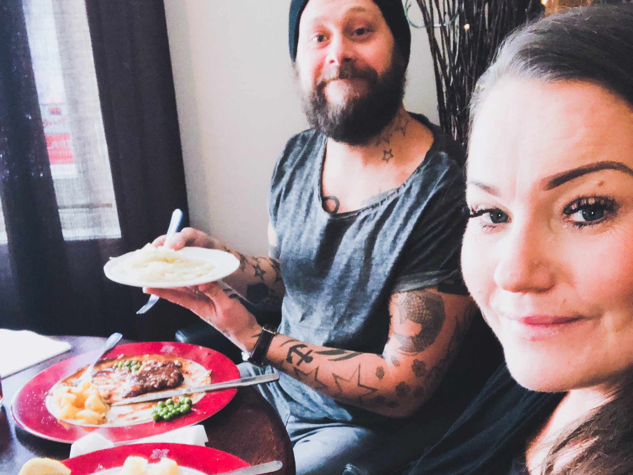 Mamma och jag åkte in till stan sen och handlade lite ljus och annat smått och gott. Lagom när vi skulle gå och äta lunch ringde pappa och berättade att däcket sprängts. Vi packade bilen med domkraft och ett nytt däck och åkte och mötte honom. Snabbt byte och in till stan igen.