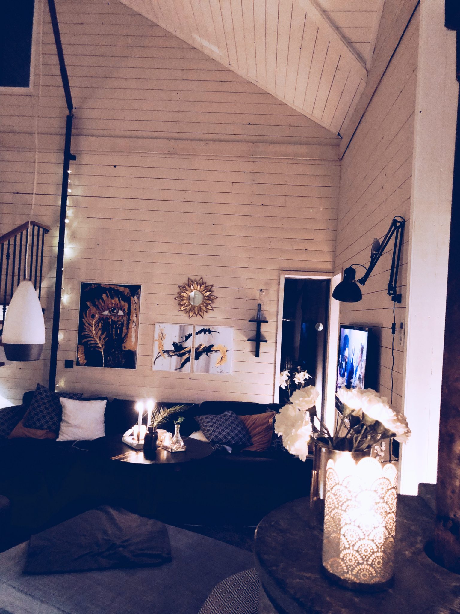 Jag har tänt ljus överallt och myset lägger sig sådär typiskt härligt för en fredagkväll. Man är lite mosig och trött, då är det verkligen magiskt med soffhäng.