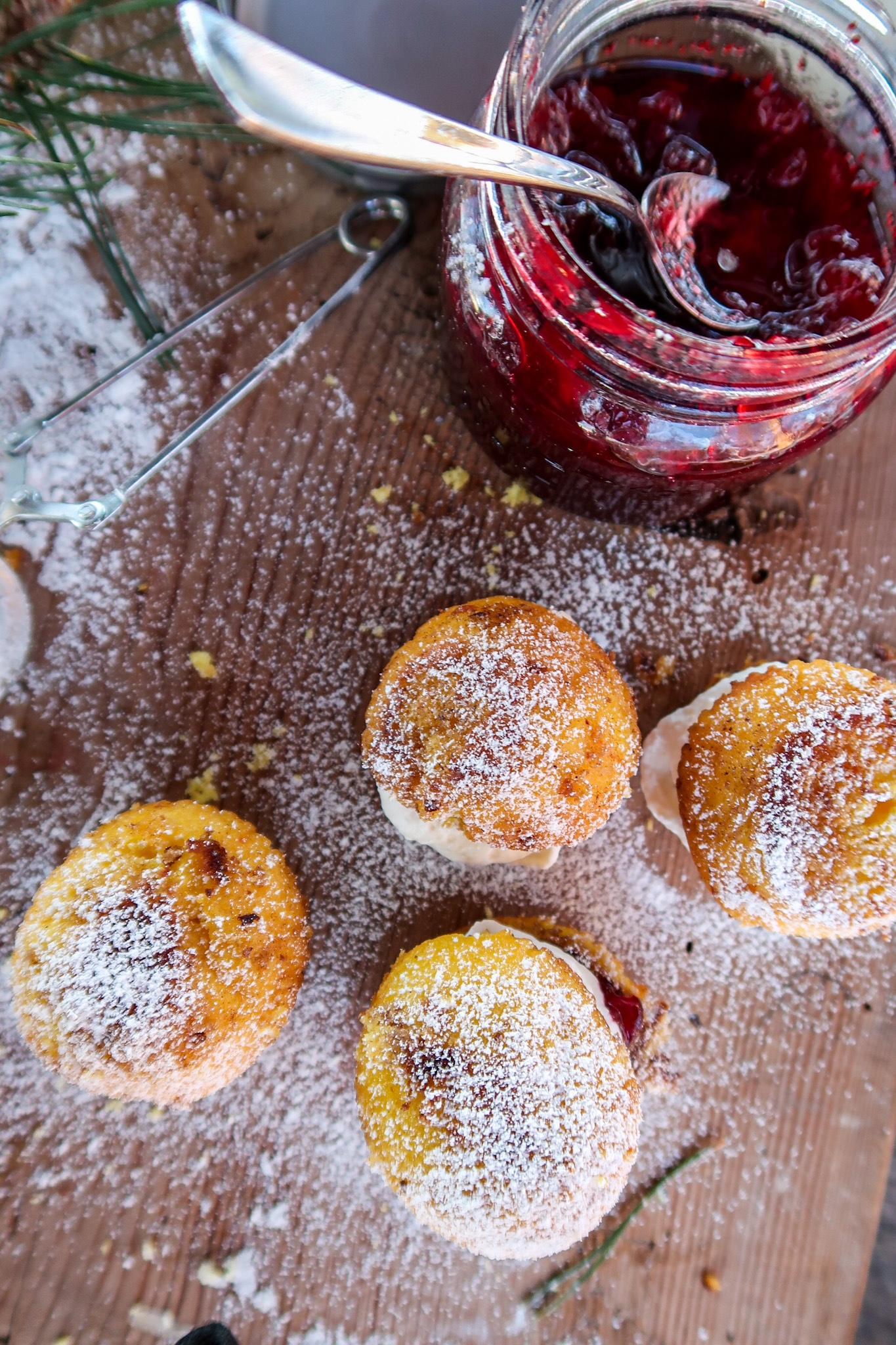 Stekta SAFFRANSMUFFINS med rårörda lingon och vispgrädde.