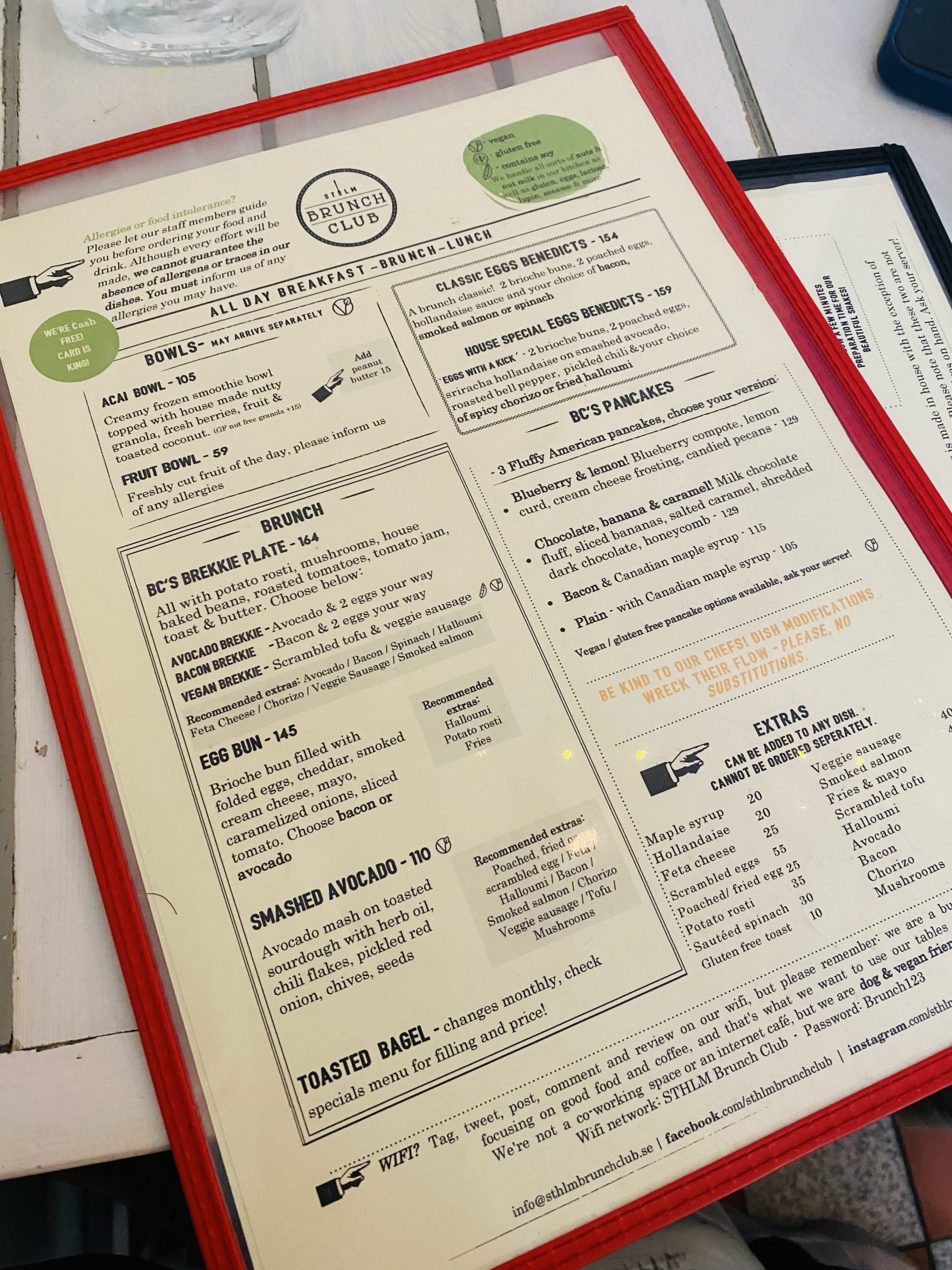 Stockholm Brunchclub heter stället. Tydligen är det en hel del folk på helgerna, och lugnt på veckorna. Men när vi var där var det knökfullt. 😀