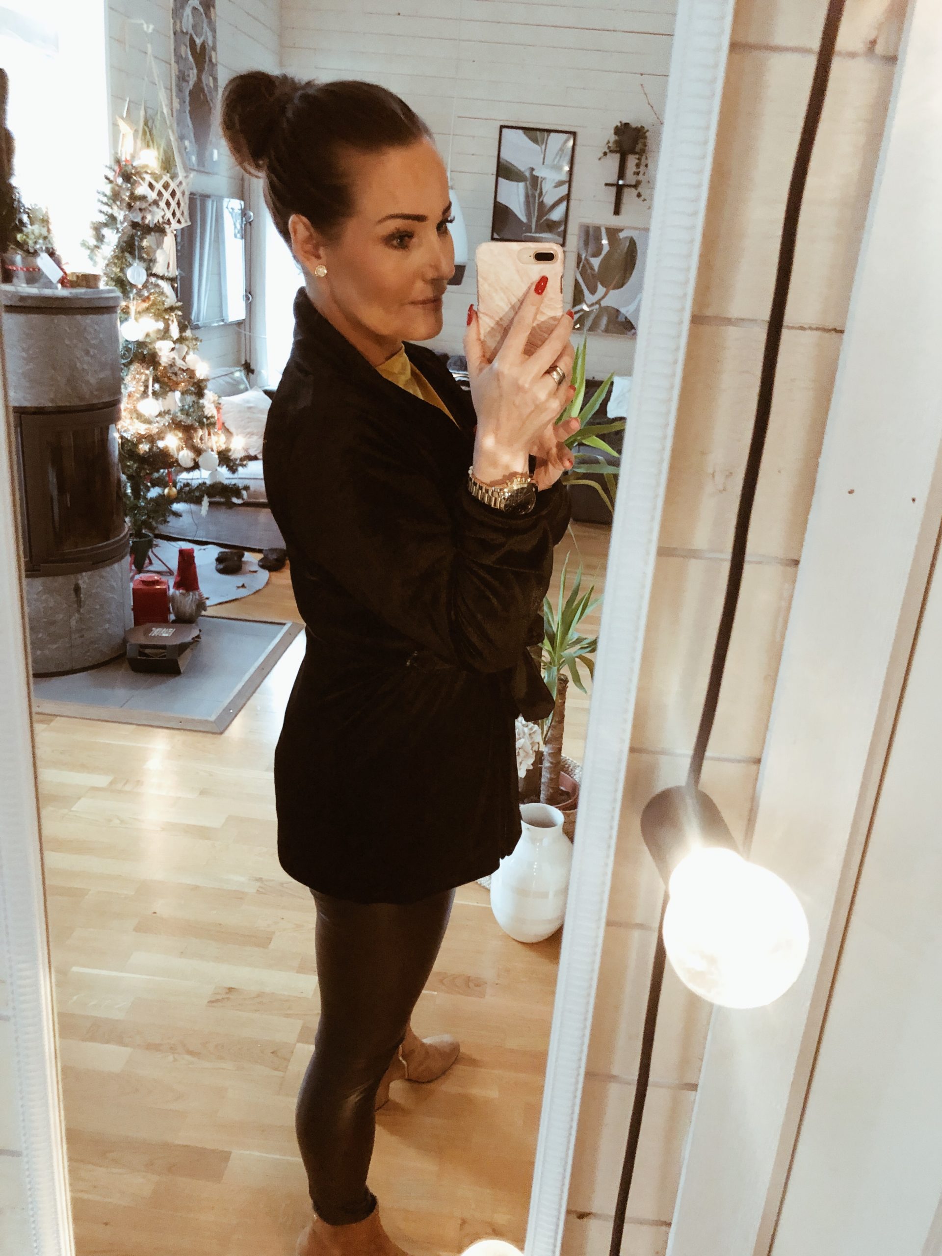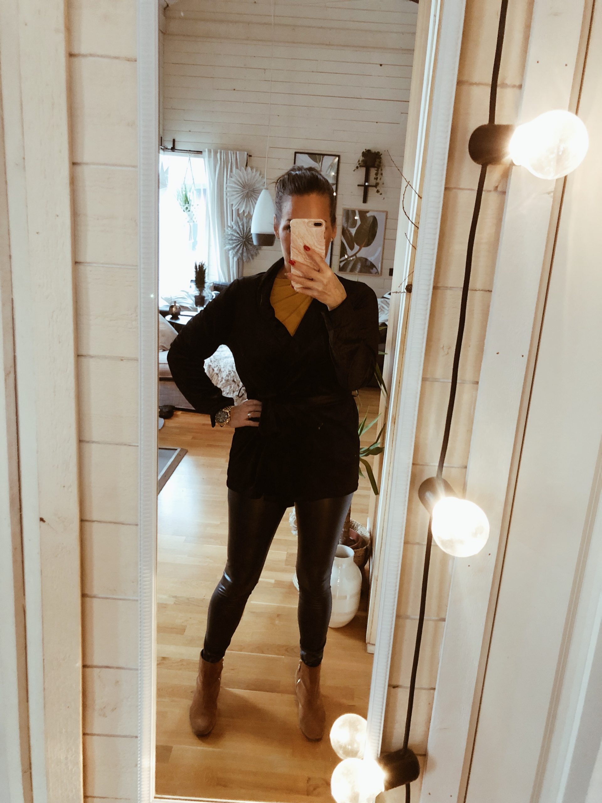 Stövletter // Leggings (Fake skinn) // Topp (slut) // Kavajcardigan (slut)