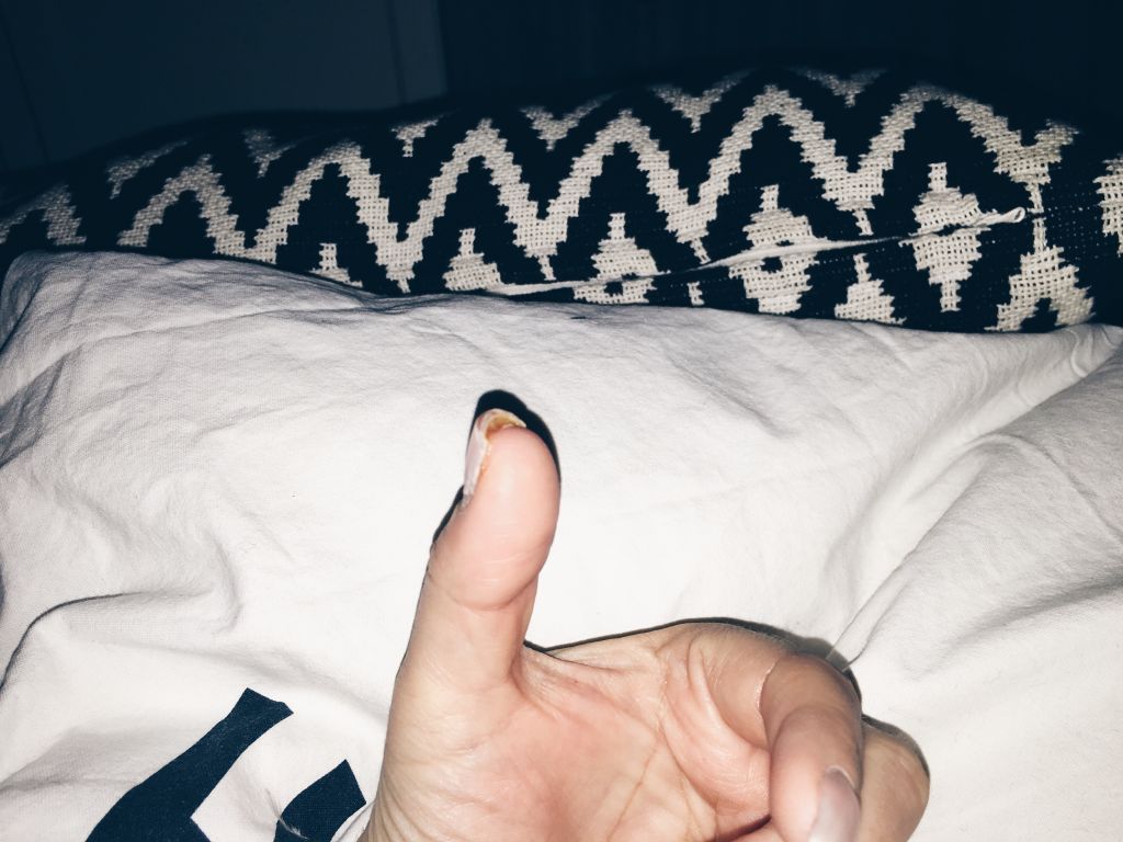 Ja hur är det med denna tumme då? Såg att någon hade varit så gullig och tänkt på mig hela dagen igår, å jag som inte skrev något mer inlägg igår… Jag var helt slut igår kväll så jag somnade supertidigt nämligen. Men som ni ser här ovan så är det en dubbelt så stor tumme typ. Nageln har jag nu lyckats klippa ned. Igår tog jag med mig Milo till husläkaren. De tittade snabbt på tummen och sa att det inte skulle göras något alls med den. Jag ska göra rent den varje dag, hälla i alsolsprit bakom nageln och sen skydda den dagtid. Nageln ska ligga som skydd uppepå men jag kunde förvänta mig smärta och svullnad i en vecka. Har jordens utväxt på naglarna men ska boka tid nästa vecka, det skulle inte gå att hålla på med min vänsterhand så det måste vänta. Får måla över lite nagellack idag när vi ska iväg på vår roadtrip.