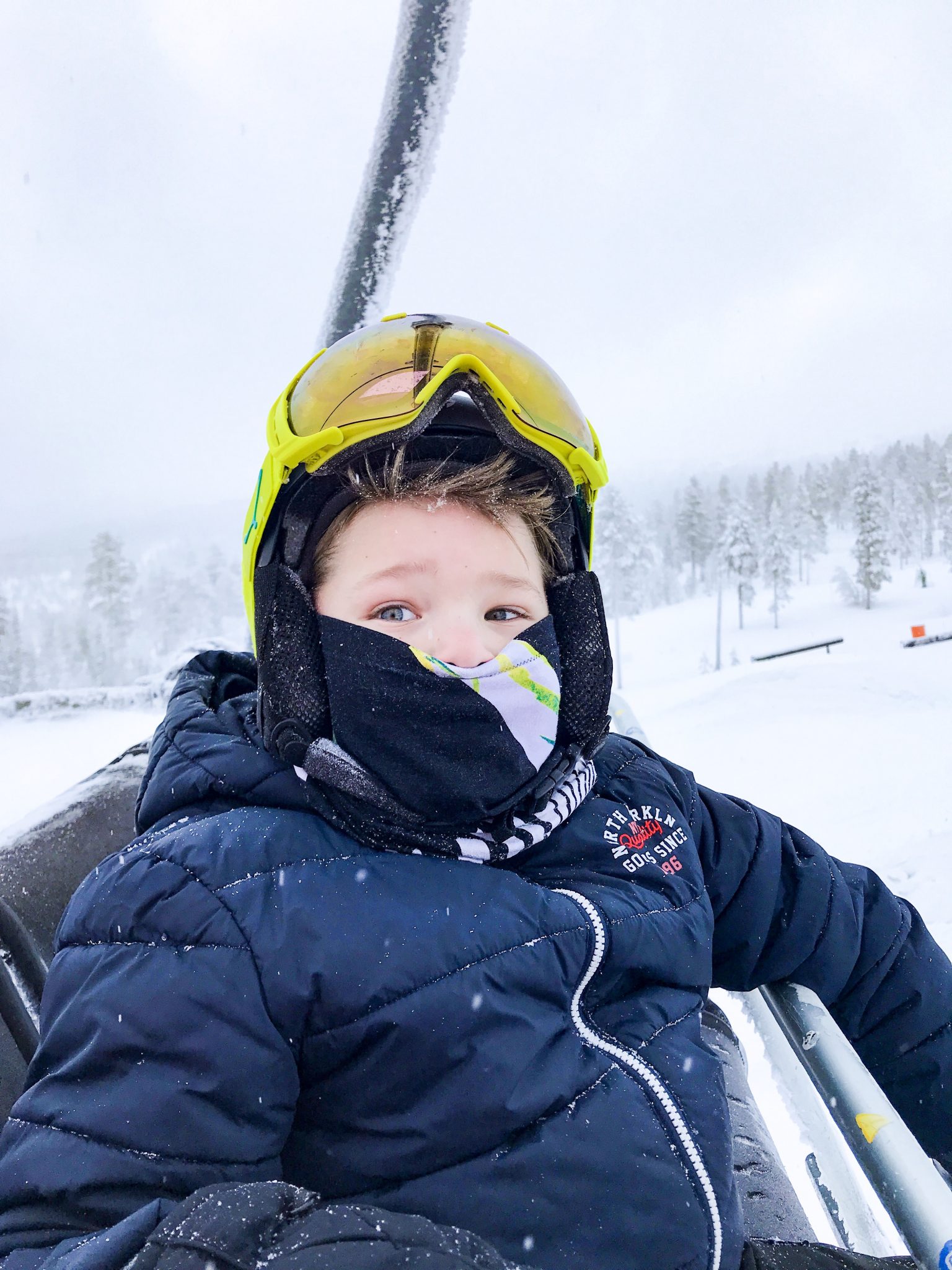 Vår tappra lilla kille. Han klagar verkligen aldrig. Han åker med och ser det mesta som roligt även om det igår knappt gick att se framför sig när vi åkte ned. Han har blivit så duktig på att åka också.