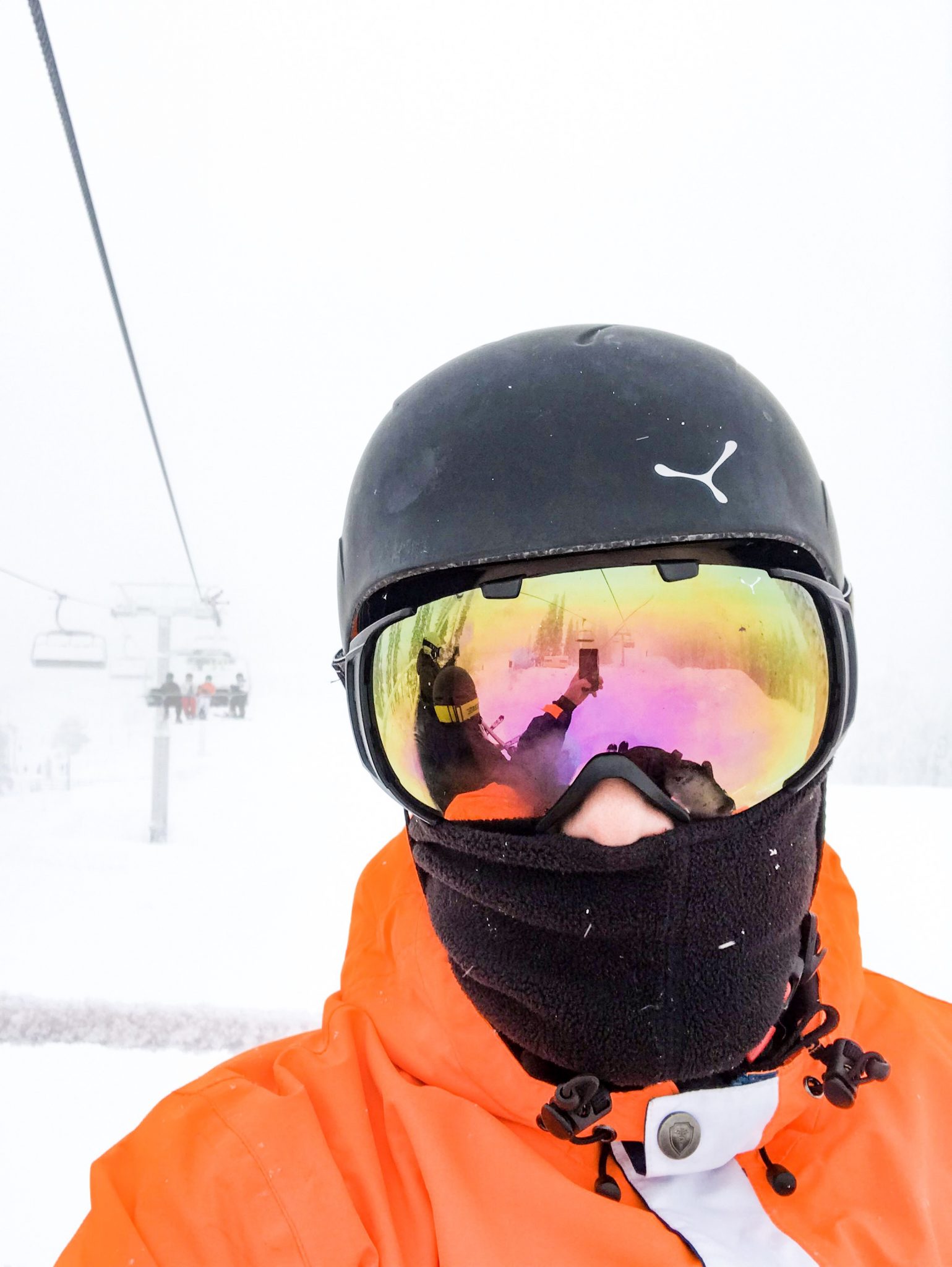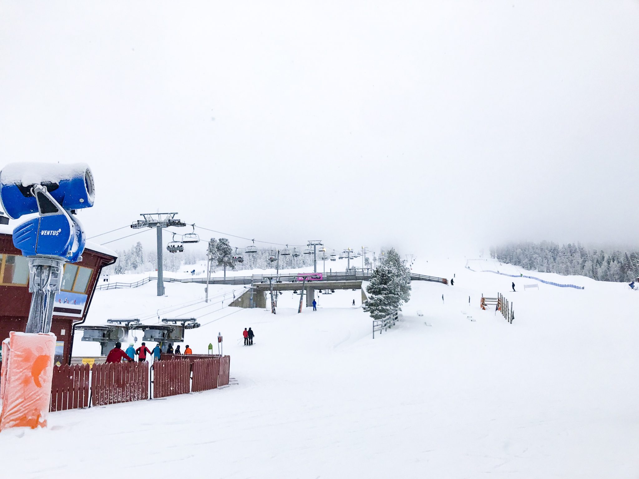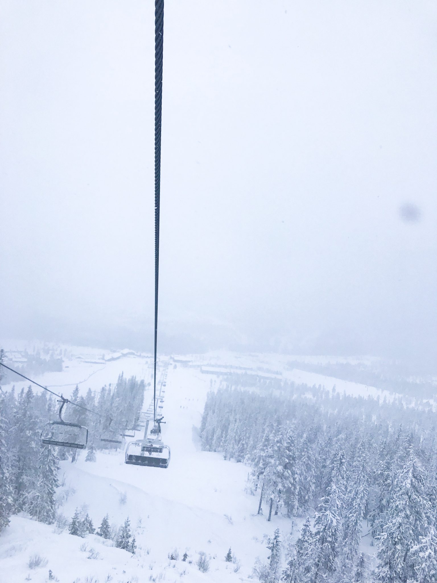 Vädret är inte det bästa tyvärr. Vi har lite snöfall och så är det asdimmigt på toppen. Men vi var tappra igår och åkte på ändå.