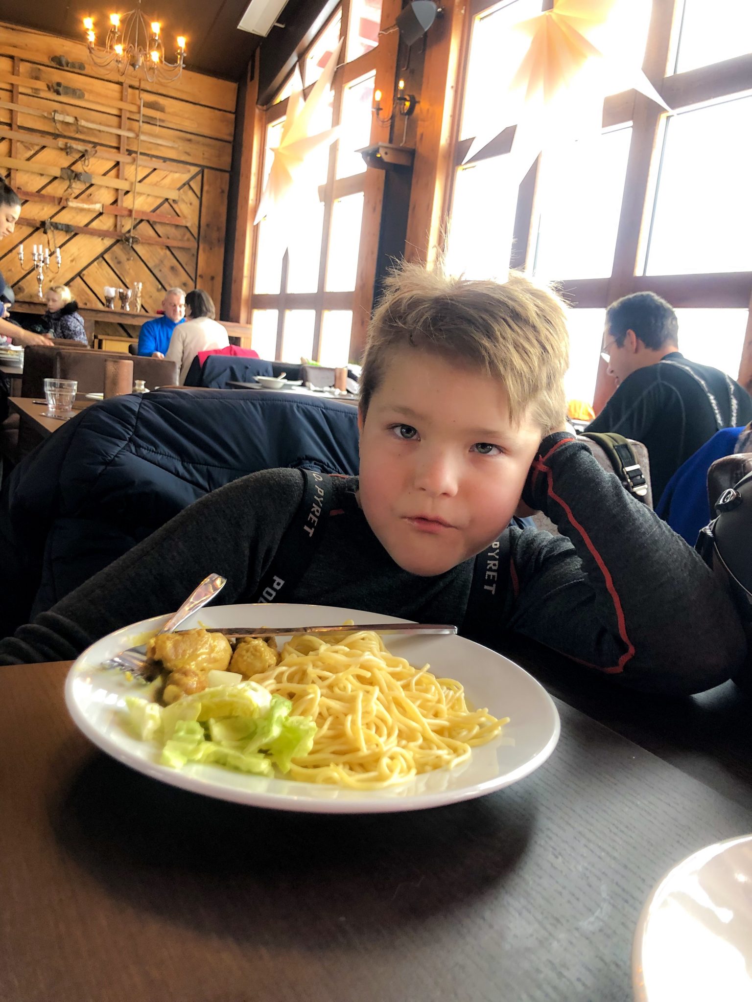 Det blev till att gå till sportboden och hyra ett par pjäxor åt honom. Han var euforisk efteråt och kunde inte förstå att pjäxor kunde vara så sköna. Sötisen!