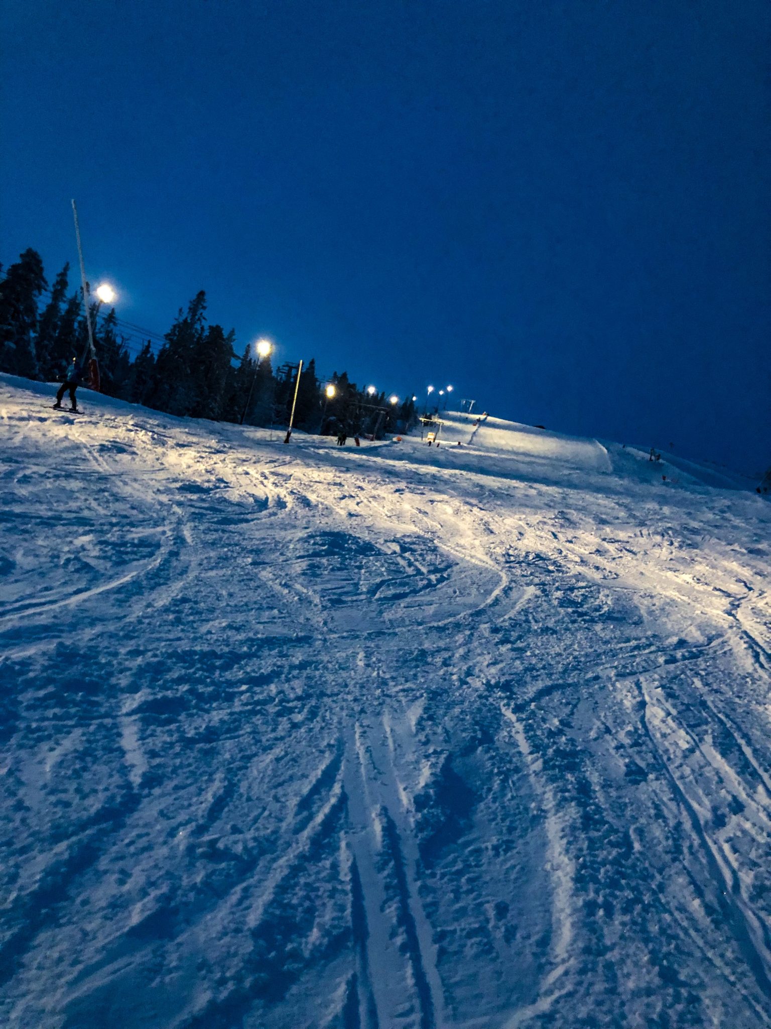 Var väl kanske inte världens härligaste att ta på sig pjäxor och hela faderullan och ge sig ut i kylan för att ta sig hem. Men ack så vackert! Med ficklampa och lite halvkasst mörkerseende hittade vi till slut till vår stuga.